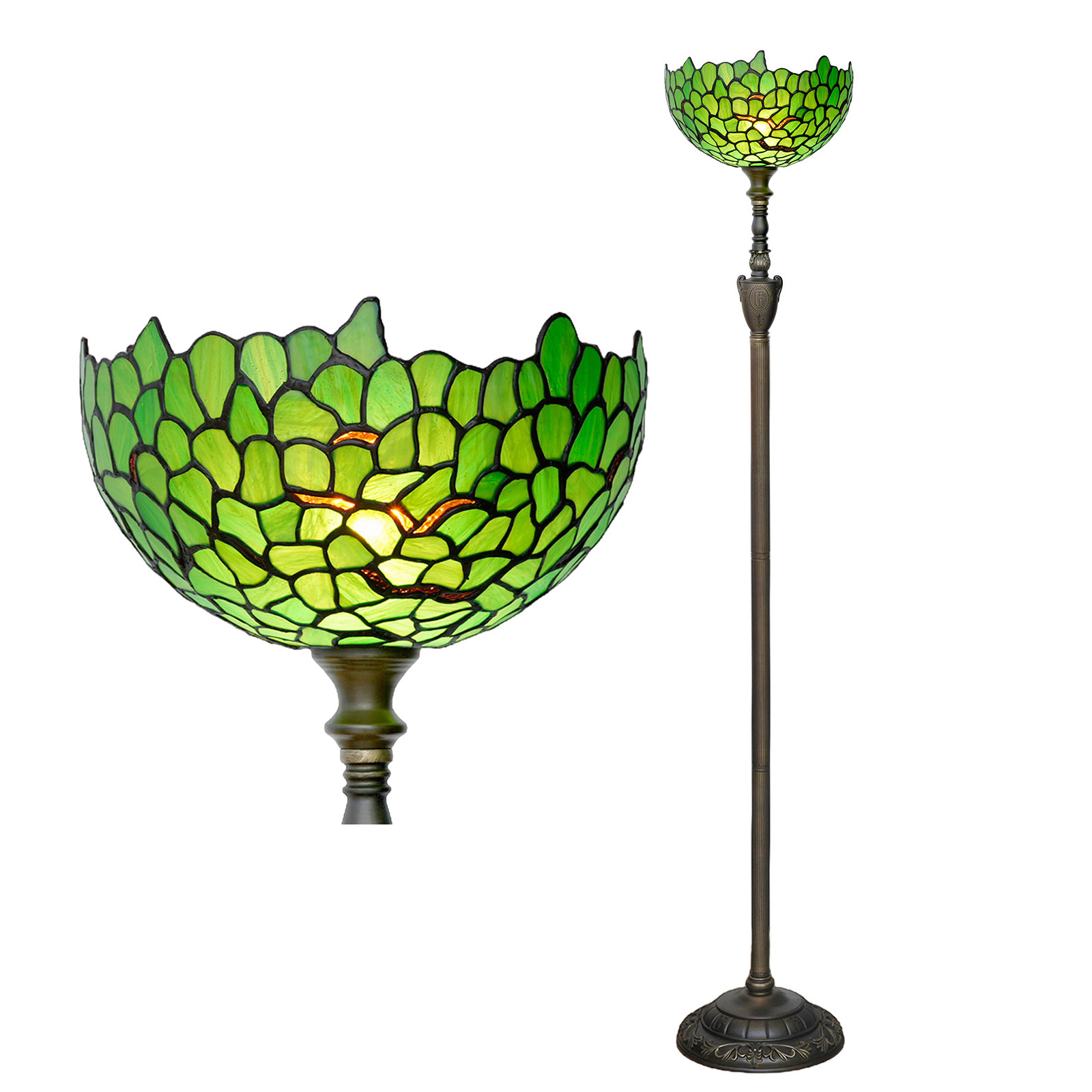 Blivuself Tiffany Floor Lamp Victorian Style 12 Inch Green Leaves Handmade Colored Glass Lamp Shade, Vertical Pole Type Upward Floor Lamp, Indoor Lighting Pastoral Style Warm Romantic Atmosphere Home Decoration Suitable For Bedroom Living Room Office Study, 12 Inch Green Leaf -Of Upward Floor Lamp OFXS015