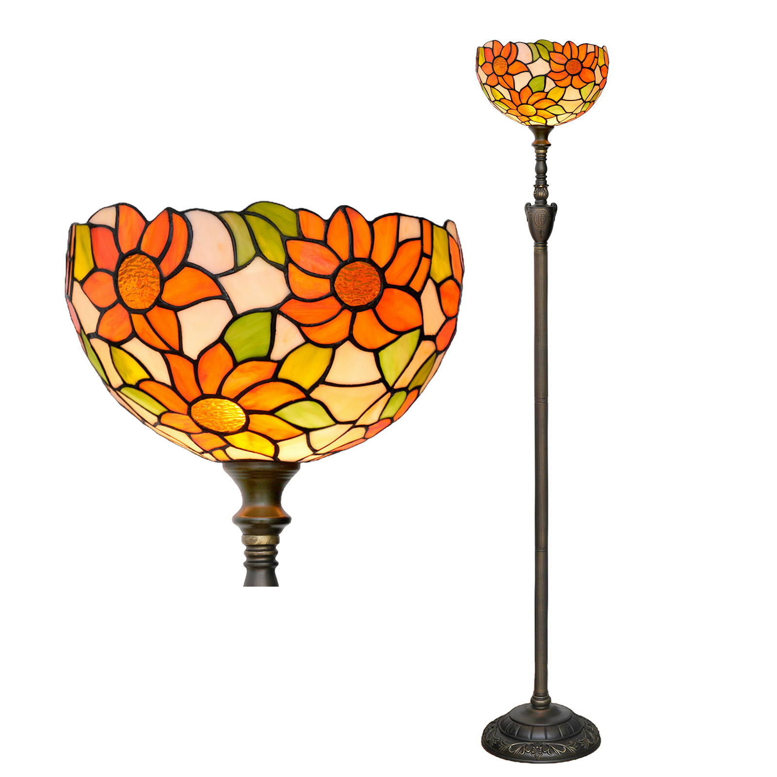 Blivuself Tiffany Floor Lamp Traditional Medieval Style 12 Inches White Orange Sunflower Hand-Made Colored Glass Lamp Shade, Vertical Pole Type Upward Floor Lamp, Indoor Lighting Retro Pastoral Style To Create Home Decoration Suitable For Bedroom Living Room Office Study, 12 Inches White Sunflower -Of Upward Floor Lamp OFXS016