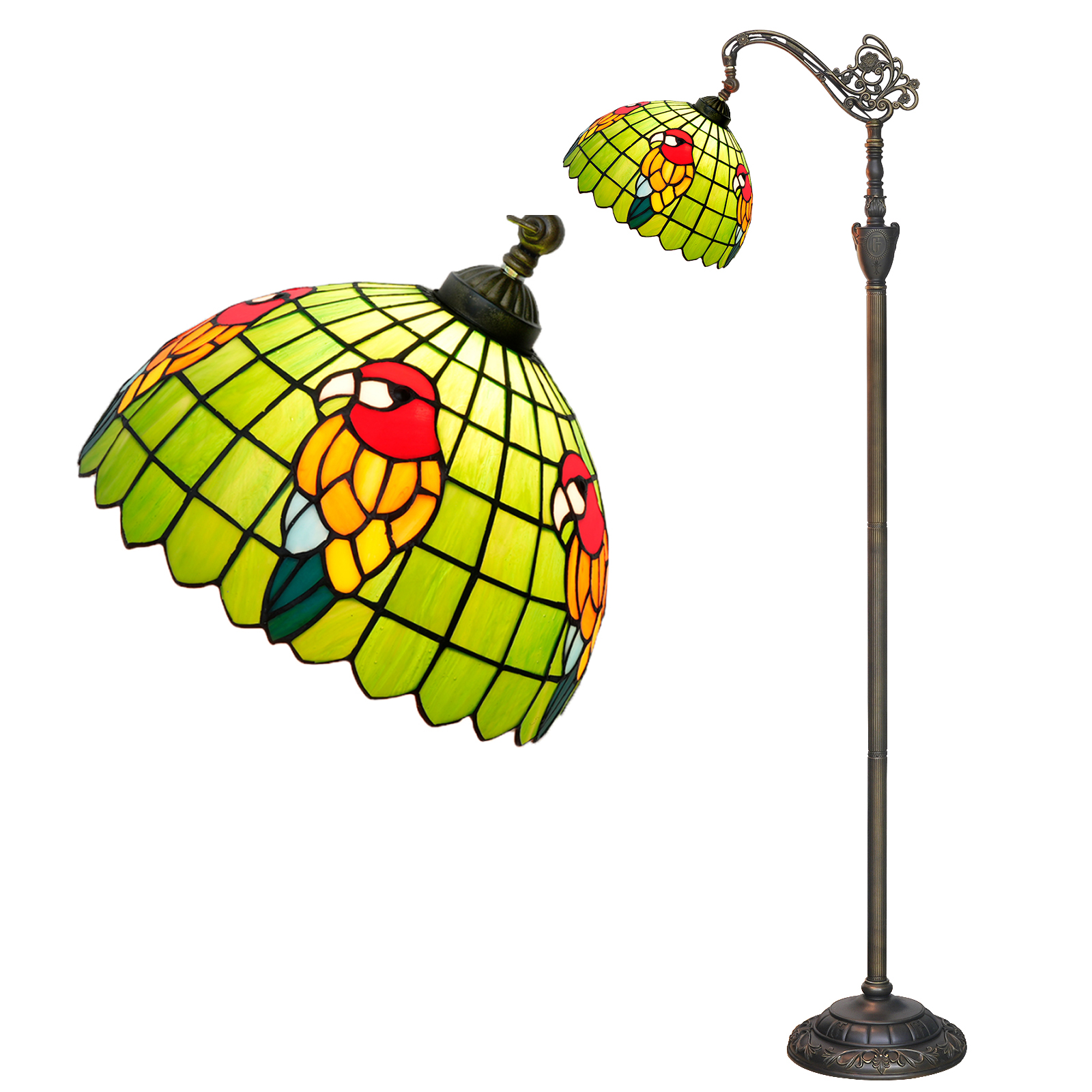 Blivuself Tiffany Floor lamp European Vintage Style 12-Inch Green Base Red Parrot Hand-Colored Glass Lamp Shade, Classical Art Style Adjustable Indoor Lighting Eye Protection Reading Light, Suitable For Study Bedroom Dining Room Office, 12-Inch Green Base Parrot -OF Downward Floor Lamp OFX021