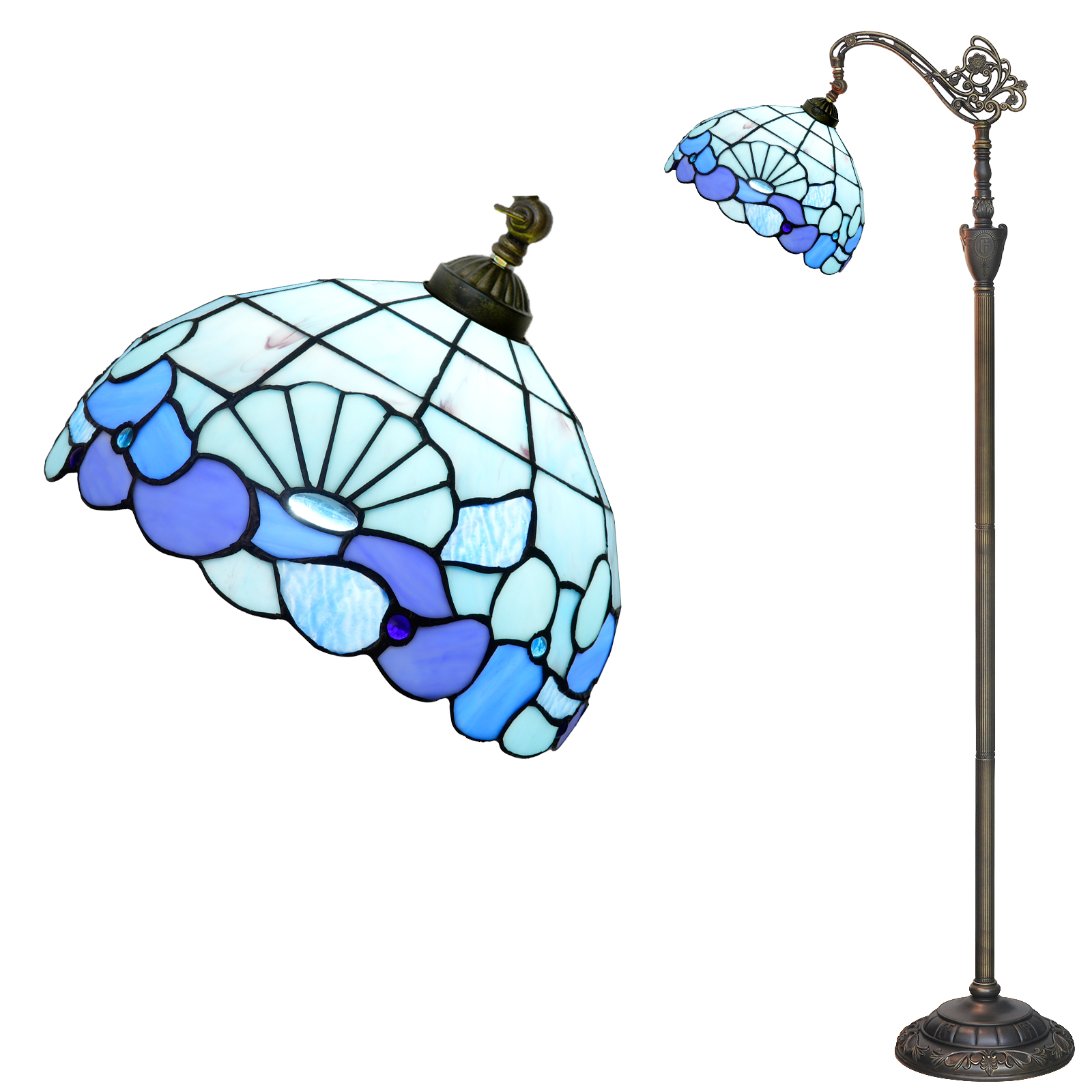 Blivuself Tiffany Floor Lamp 12 Inch Blue Sea Shell Stained Glass Lamp Classical Art Style Adjustable Lighting Eye Protection Reading Lamp For Study Bedroom Dining Room Office Tiffany Retro Style Home Decoration(OFX043)