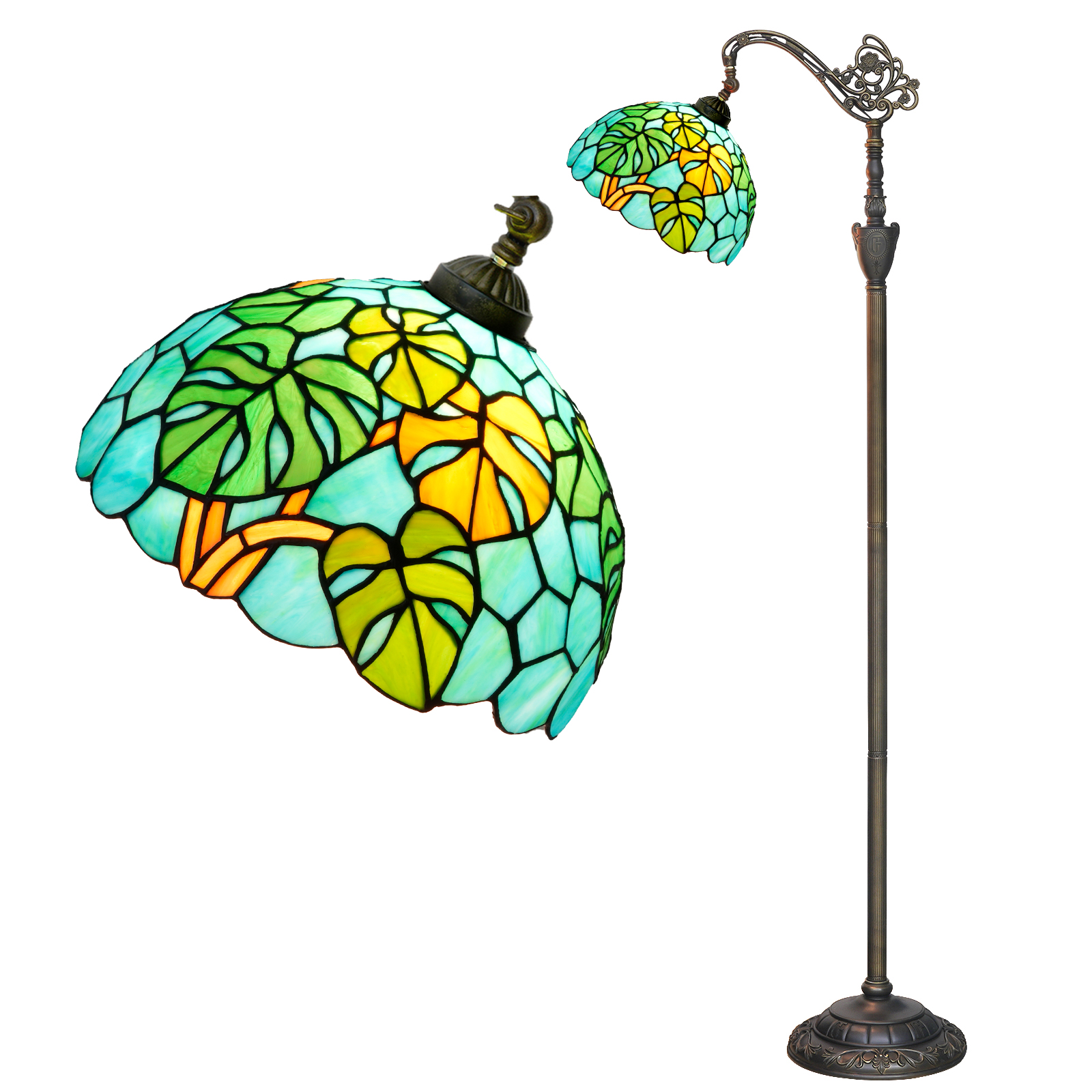 Blivuself Tiffany Floor lamp Retro Pastoral Style 16 Inch Green Leaf Hand-Colored Glass Lamp Shade, Classical Style Indoor Lighting Eye Protection Reading Light, Suitable For Study Bedroom Dining Room Office, 16 Inch Green Leaf -OF Floor Lamp OFN42