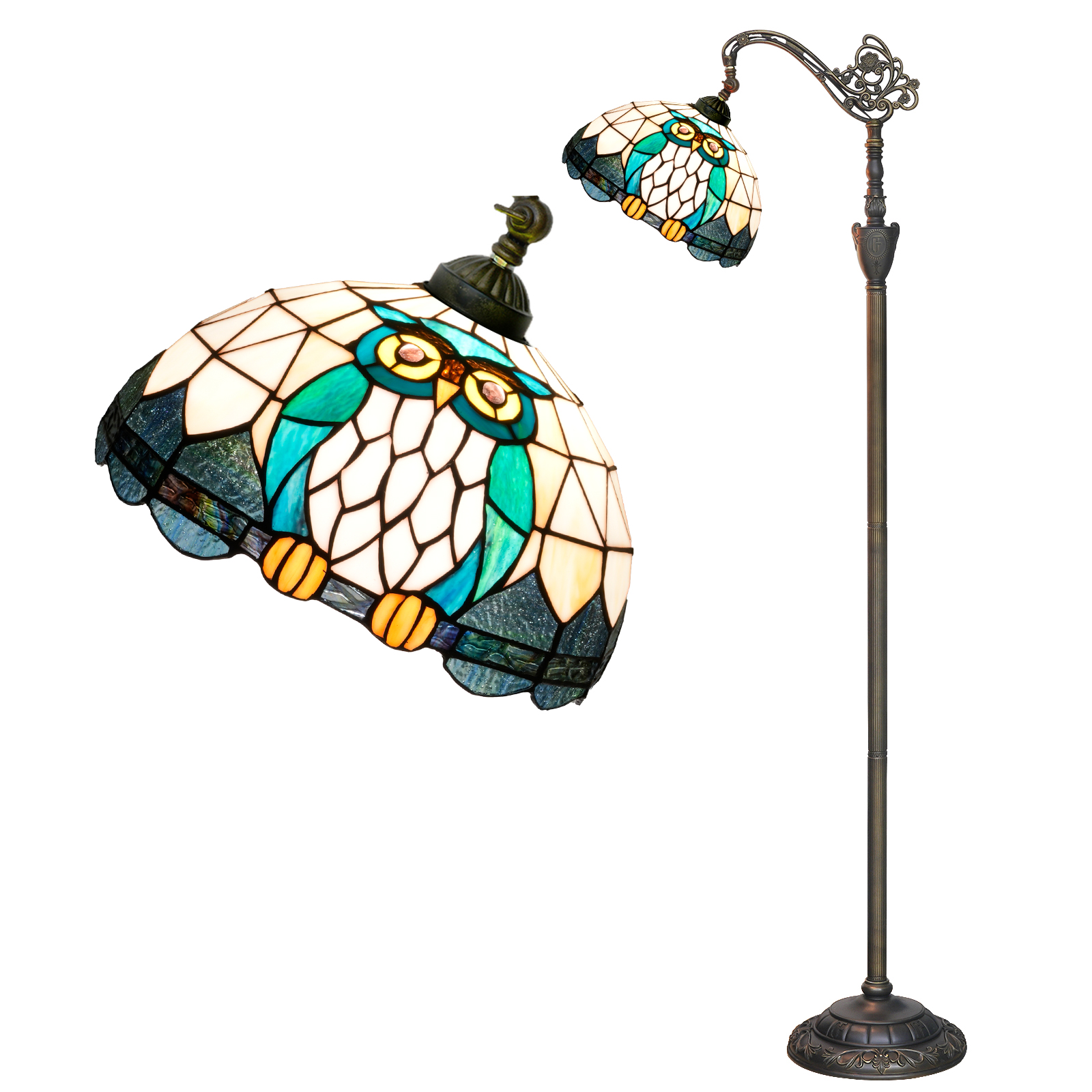 Blivuself Tiffany Floor Lamp Cyan Owl 12 Inch Handmade Stained Glass Lamp Tiffany Retro Style Floor Lamp For Bedroom Dining Room Living Room Study Office And Other Classical Art Home Decoration Crafts OFX023