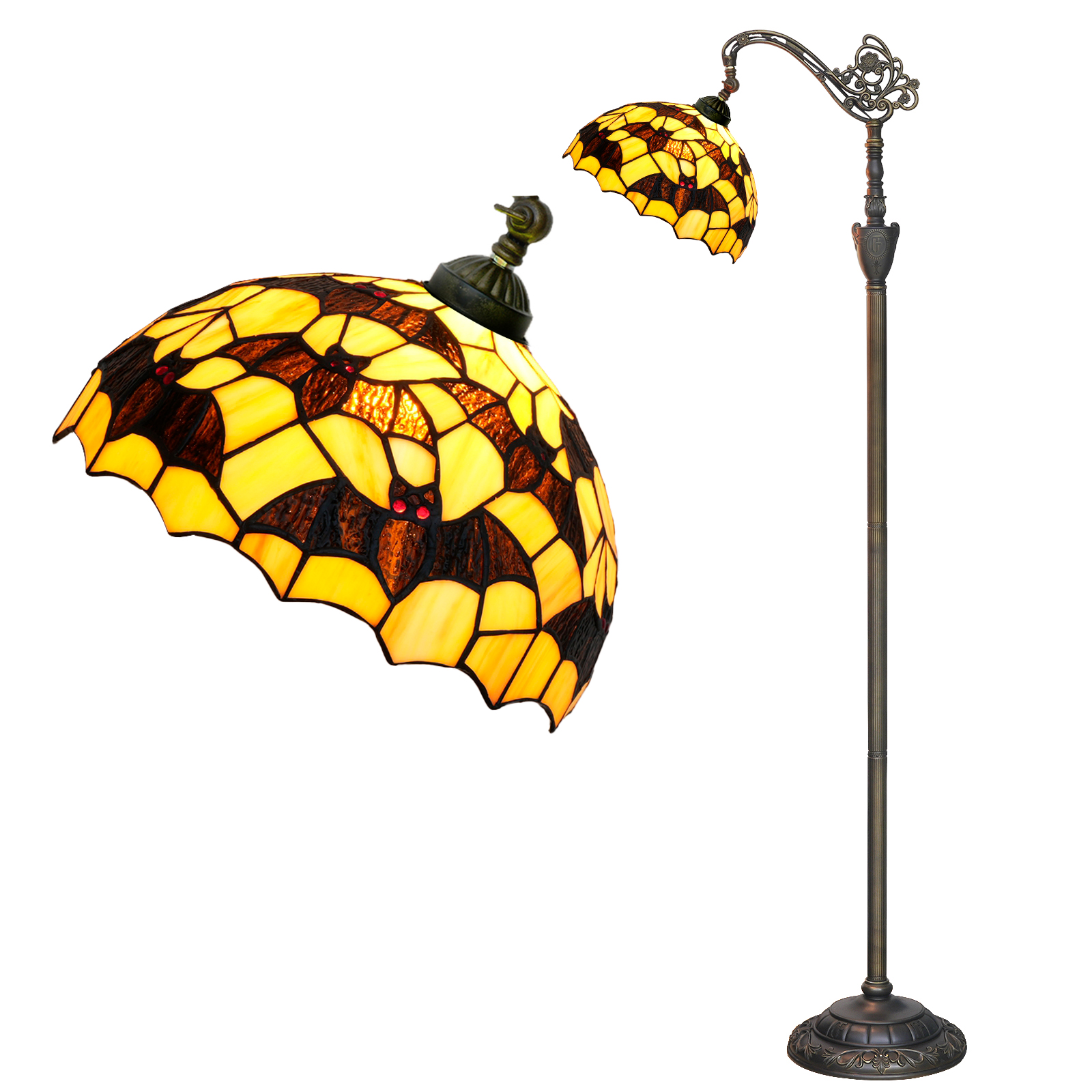 Blivuself Tiffany Floor Lamp Yellow Background Black Bat 12 Inch Handmade Stained Glass Lamp Tiffany Retro Style Floor Lamp Suitable For Bedroom Dining Room Living Room Study Office And Other Classical Art Home Holiday Decoration Crafts OFX026