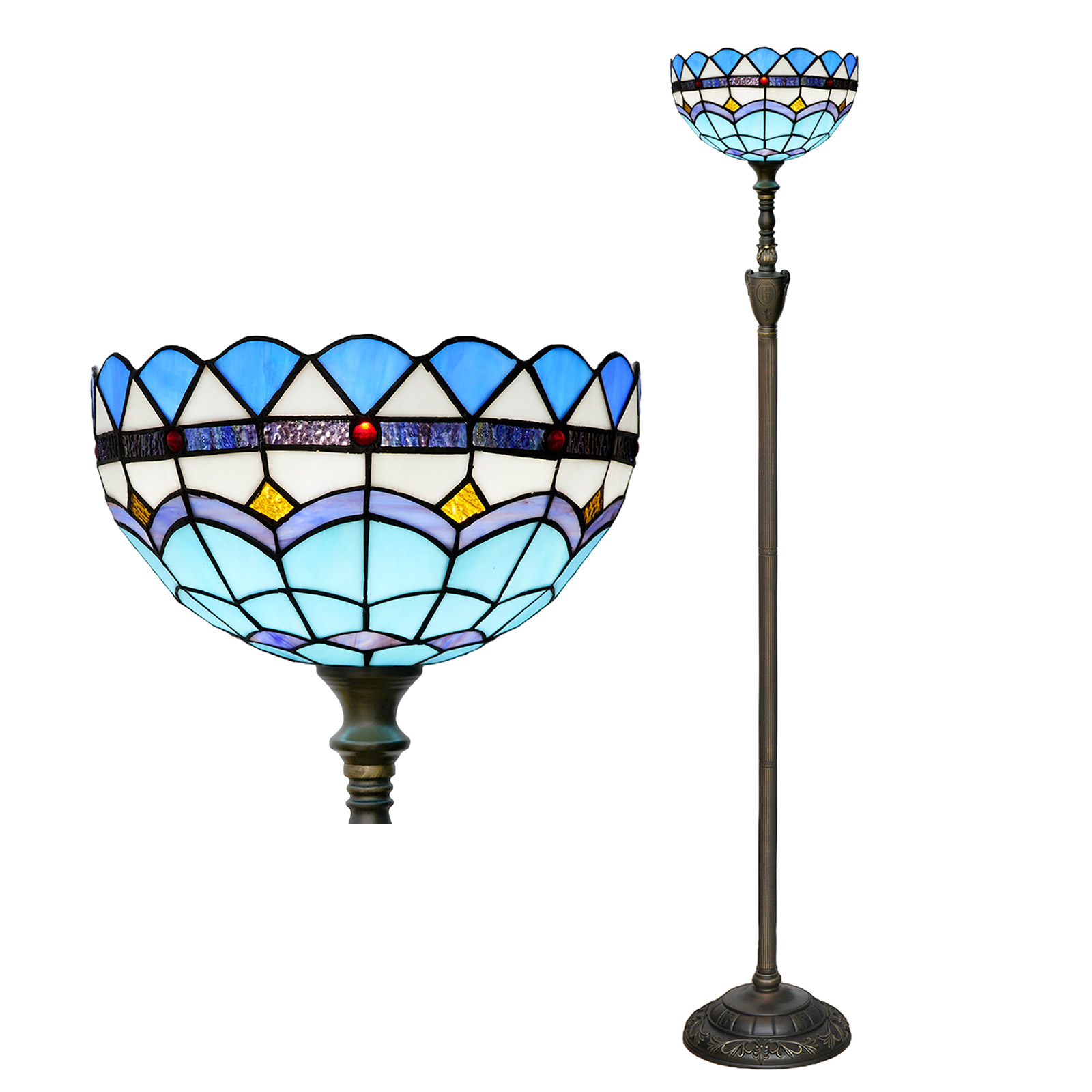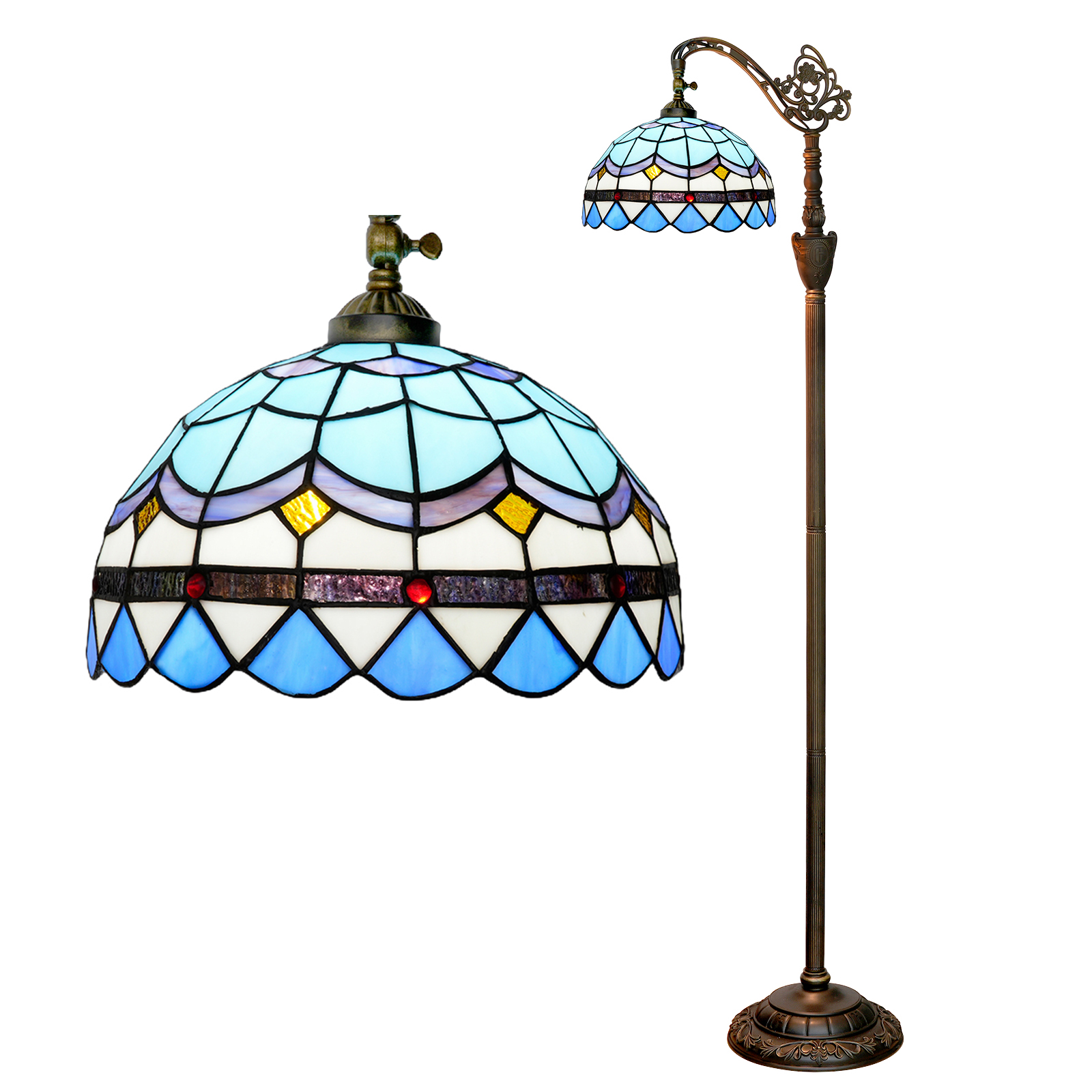 Blivuself Tiffany Floor Lamp Bohemian Style 12 Inches Lavender Purple Baroque Floor Lamp Interior Lighting Soft Arch Goosenock Adjustable Angle Reading Lamp Classical Art Style Home Decoration, Hand-Made Colored Glass Lamp Shade For Bedroom Living Room Office Study, 12 Inches Blue Baroque -Of Downward Floor Lamp OFX010
