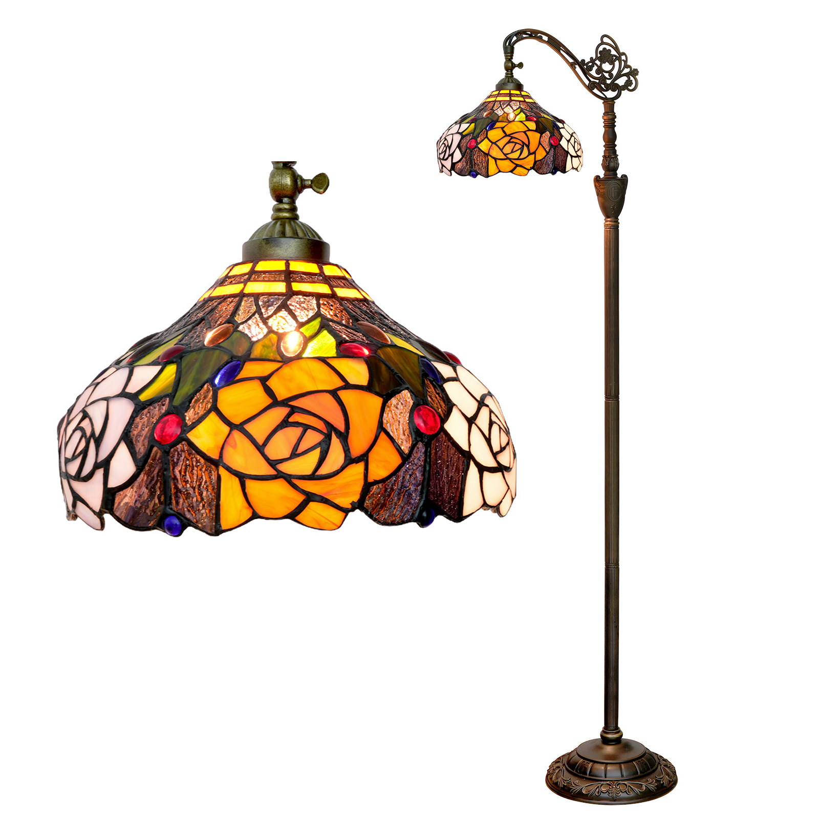 Blivuself Tiffany Floor Lamp Traditional Medieval Style 12 Inches Deep Purple Rose Indoor Lighting Soft Arch Goosenneck Adjustable Angle Reading Lamp Light Luxury Style Home Decoration, Hand-Made Colored Glass Lamp Shade Suitable For Bedroom Living Room Office Study, 12 Inches Black Rose-Of Downward Floor Lamp OFX004