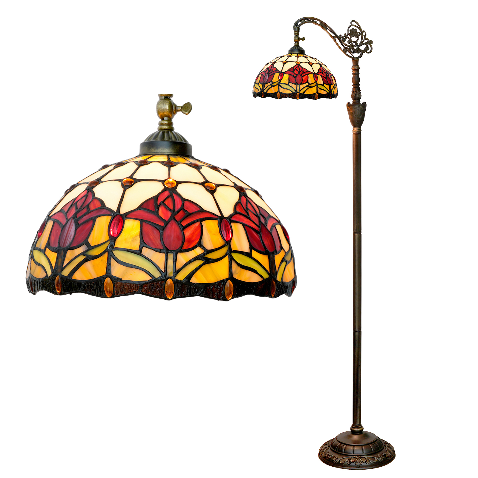 Blivuself Tiffany Floor Lamp Traditional Medieval Style 12-Inch Red Tulip Floor Lamp Interior Lighting Soft Arch Swanny Neck Adjustable Angle Reading Lamp Light Luxury Style Home Decoration, Hand-Made Colored Glass Lamp Shade Suitable For Bedroom Living Room Office Study, 12-Inch Red Tulip-Of Downward Facing Floor Lamp OFX005