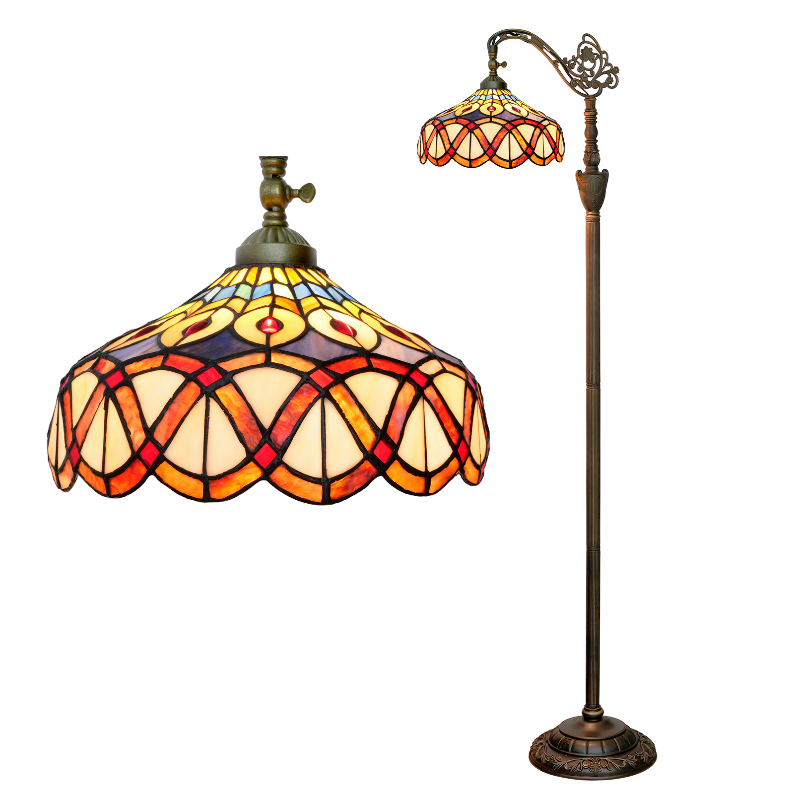 Blivuself Tiffany Floor Lamp Victorian Style 12 Inch Yellow Baked Curved Floor Lamp Indoor Lighting Soft Arch Goosenneck Adjustable Angle Reading Lamp European Retro Style Home Decoration, Hand-Made Stained Glass Lamp Shade Suitable For Bedroom Living Room Office Study, 12 Inch Simple European Baked Curved -OF Floor Lamp OFX007