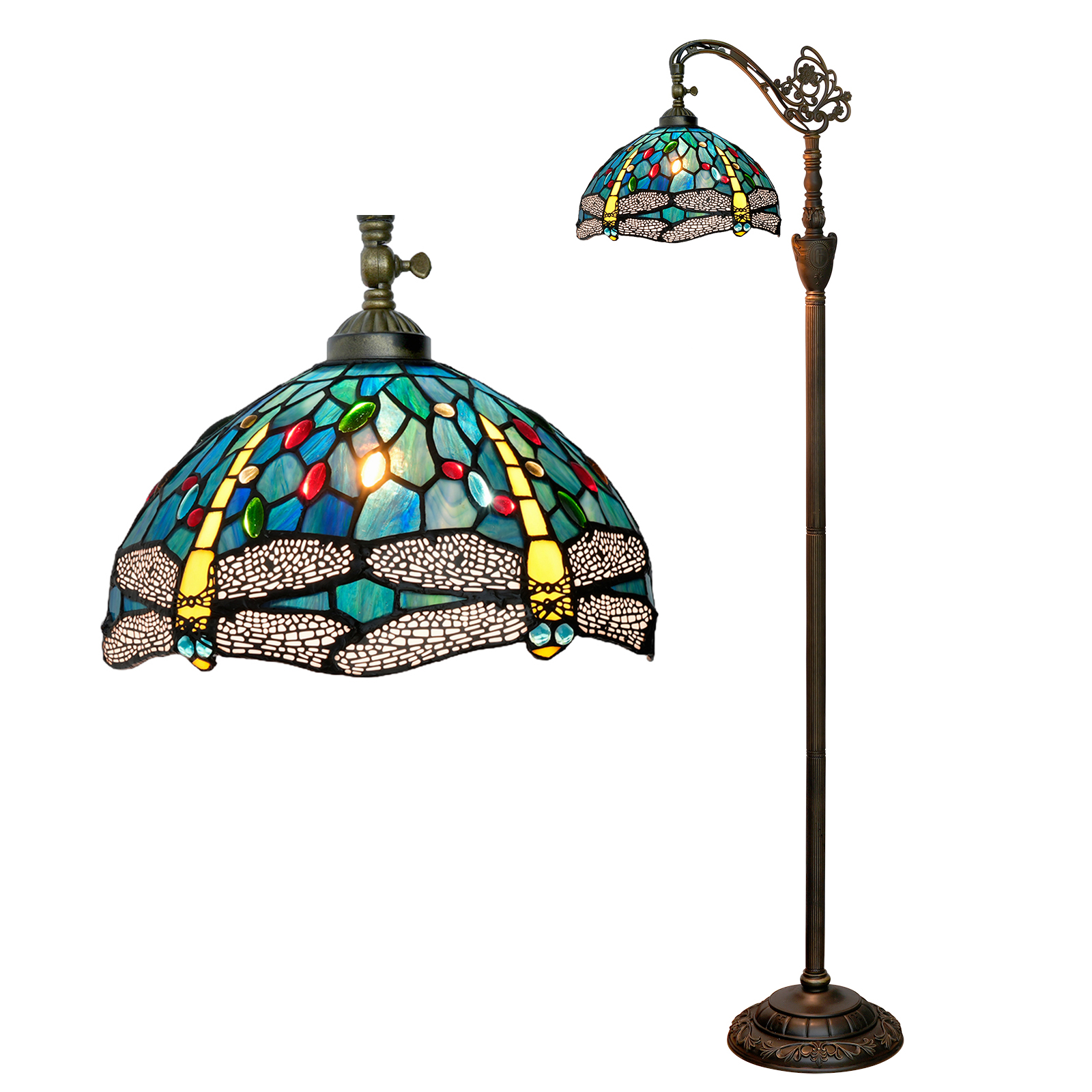Blivuself Tiffany Floor Lamp Retro Country Style 12-Inch Blue Background Yellow Dragonfly Floor Lamp Indoor Lighting Soft Arch Goosenneck Adjustable Angle Reading Lamp European Vintage Style Home Decoration, Hand-Made Stained Glass Lamp Shade Suitable For Bedroom Living Room Office Study, 12-Inch Blue Green Dragonfly -Of Down-Facing Floor Lamp OFX009