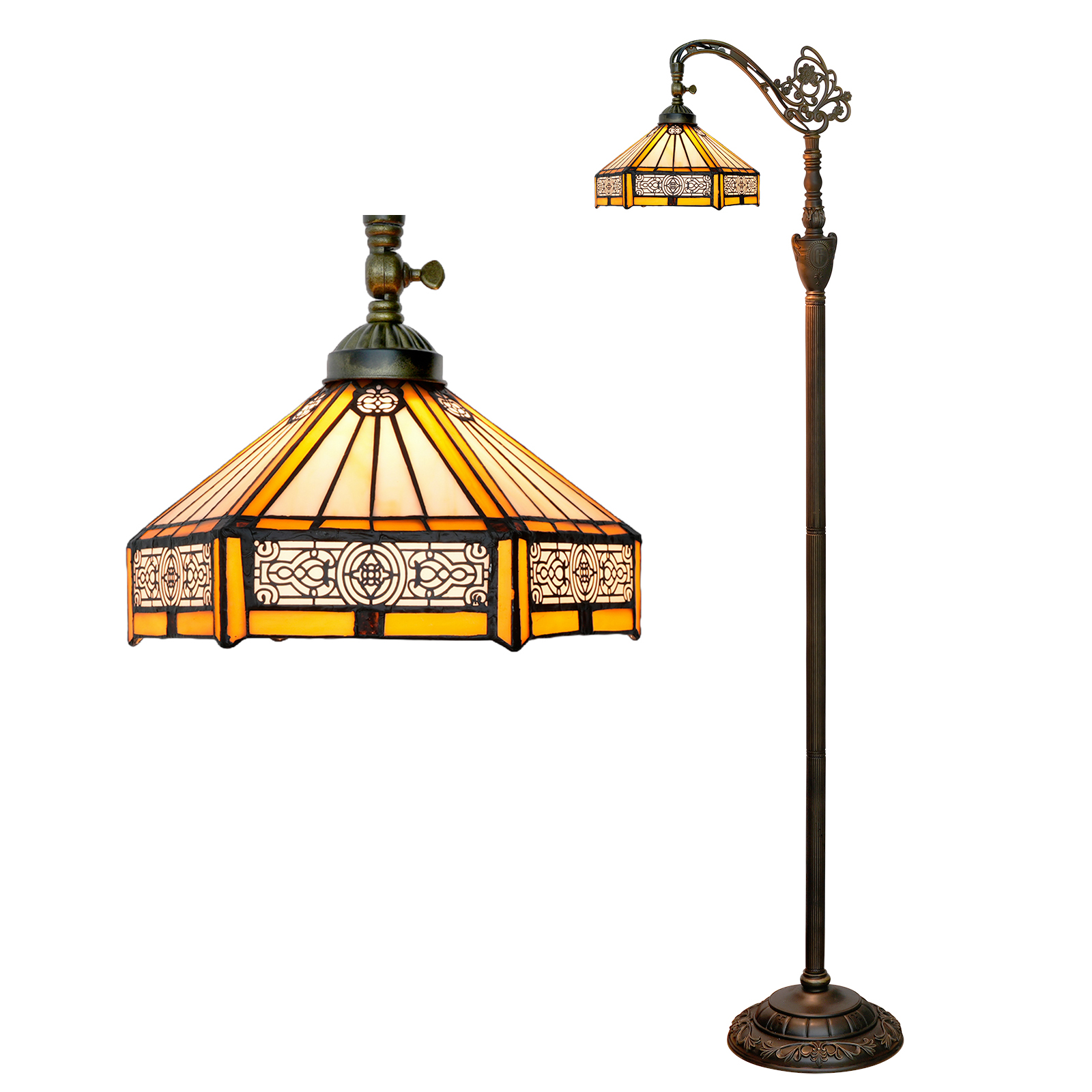 Blivuself Tiffany Floor Lamp European Retro Style 10-Inch Black Copper Net Six-Sided Floor Lamp Indoor Lighting Soft Arch Goosenock Adjustable Angle Reading Lamp Classical Art Style Atmosphere Home Decoration, Hand-Made Colored Glass Lamp Shade Suitable For Bedroom Living Room Office Study, 10-Inch Hexagonal Chinese-Of Downward Floor Lamp OFX011