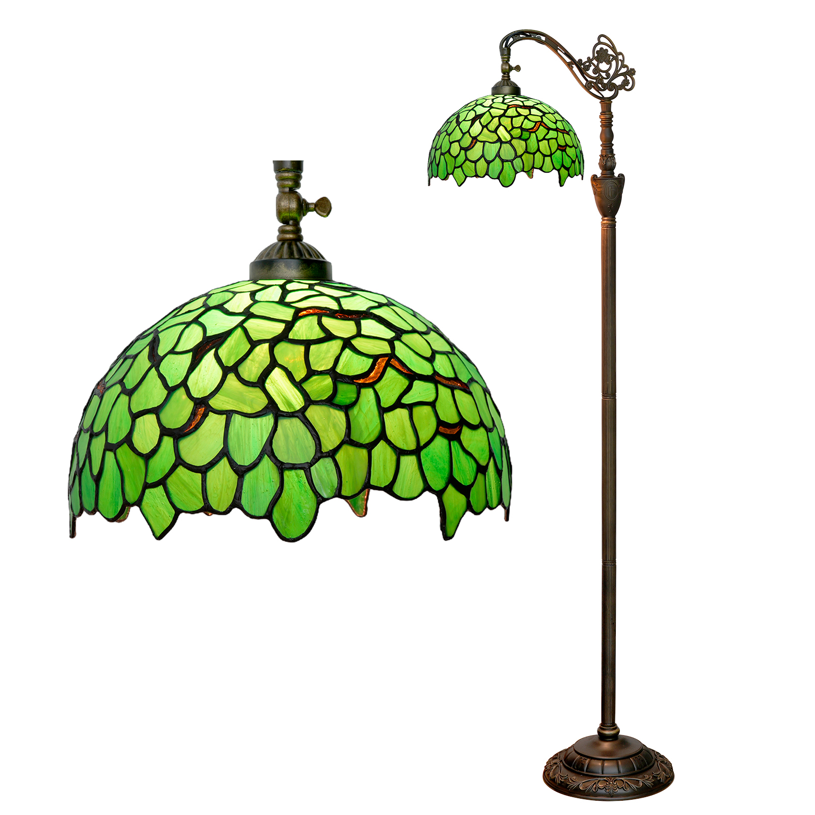 Blivuself Tiffany Floor Lamp Retro Country Style 12-Inch Green Leaf Floor Lamp Indoor Lighting Soft Arch Goosenneck Adjustable Angle Reading Lamp Romantic Warm Atmosphere To Create Home Decoration, Hand-Made Stained Glass Lamp Shade Suitable For Bedroom Living Room Office Study, 12 Inch Green Leaf -Of Downward Floor Lamp OFX014
