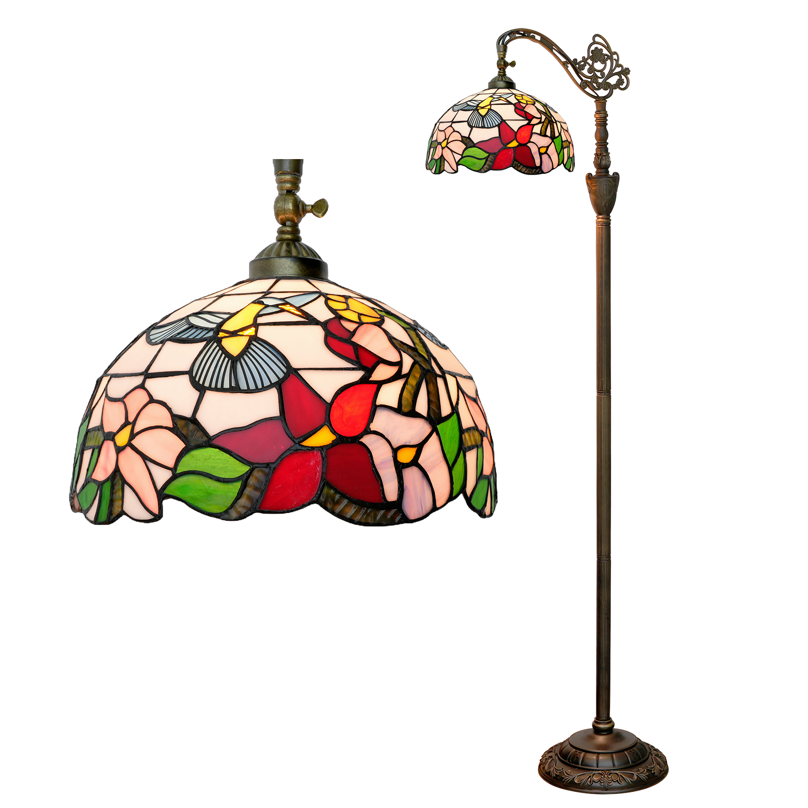 Blivuself Tiffany Floor Lamp Bohemian Style 12-Inch Blue Hummingbird Floor Lamp Indoor Lighting Soft Arch Goosenneck Adjustable Angle Reading Lamp Classical Art Home Decoration, Hand-Made Colored Glass Lamp Shade Suitable For Bedroom Living Room Office Study, 12 Inch Bird-Of Downward Floor Lamp OFX016