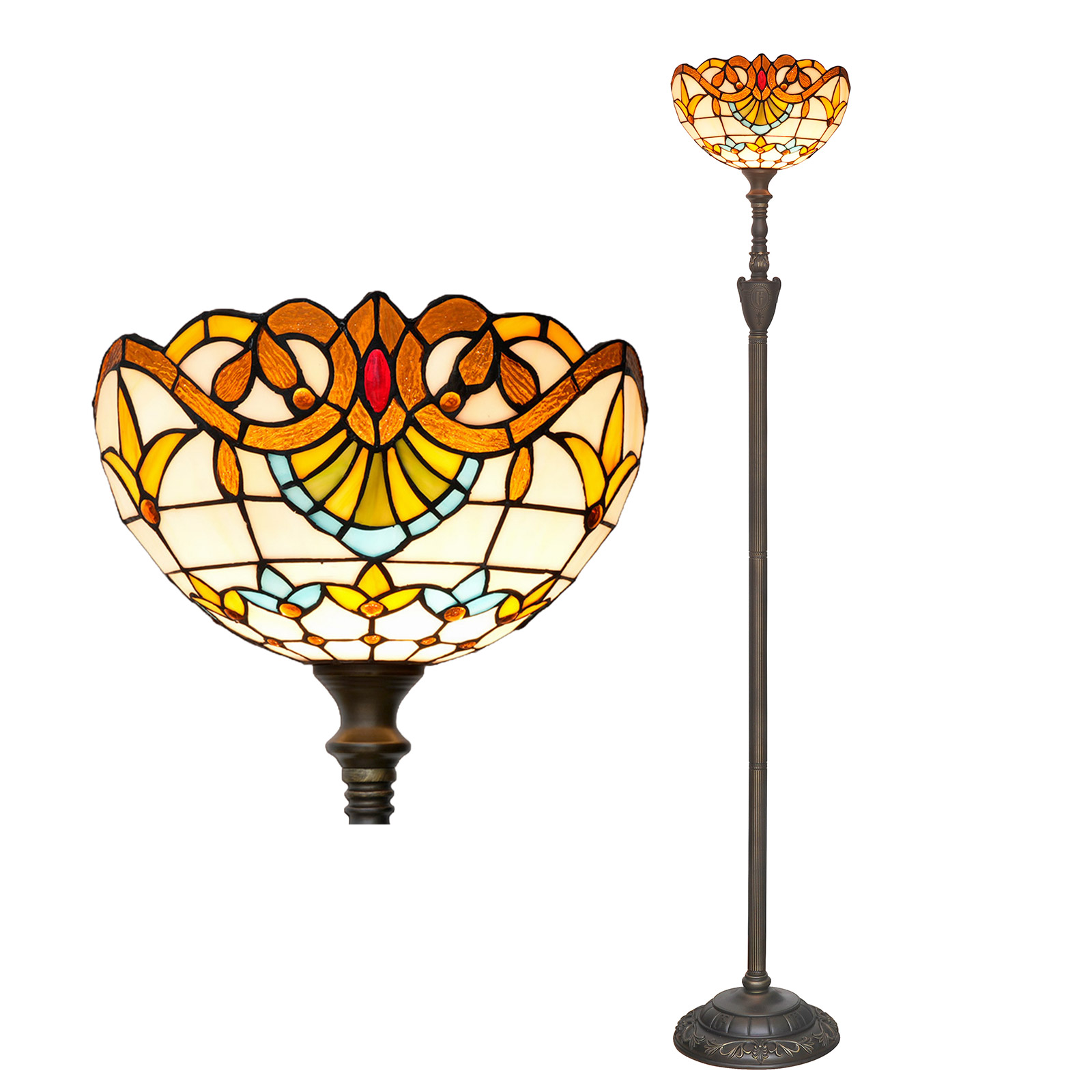 Blivuself Tiffany Floor Lamp European Retro Style 12 Inch Yellow Baroque Handmade Stained Glass Lampshade, Vertical Pole Type Up Floor Lamp, Interior Lighting Traditional Classical Art Atmosphere Home Decoration For Bedrooms, Living Rooms, Offices, Study, 12 Inch Baroque-Of Up Floor Lamp OFXS001