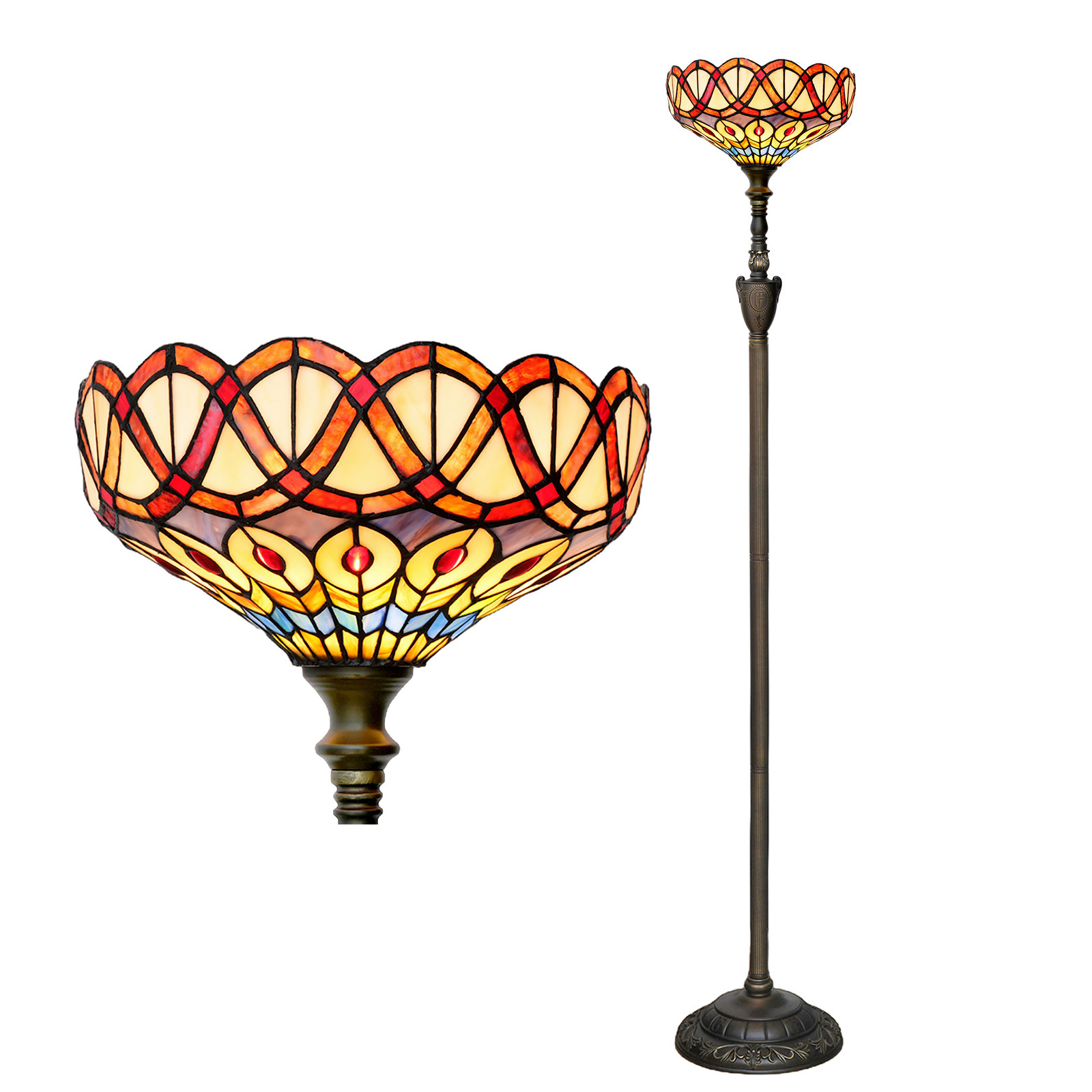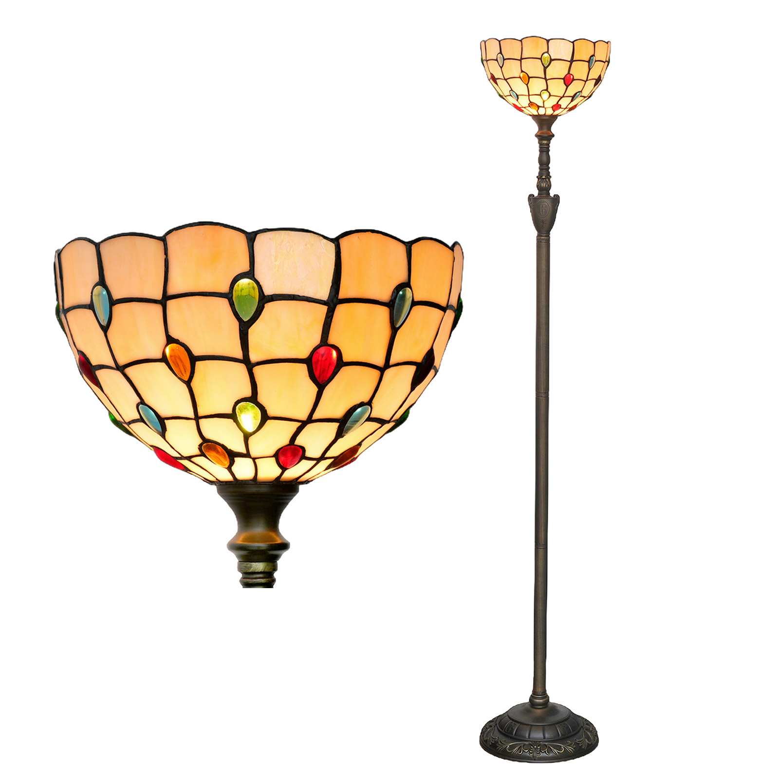 Blivuself Tiffany Floor Lamp Traditional European Style 12 Inch Yellow Colored Beads Handmade Stained Glass Lamp Shade, Vertical Pole Type Upward Floor Lamp, Indoor Lighting Retro Style Home Decoration Suitable For Bedroom Living Room Office Study, 12 Inch Colored Beads -Of Upward Floor Lamp OFXS002