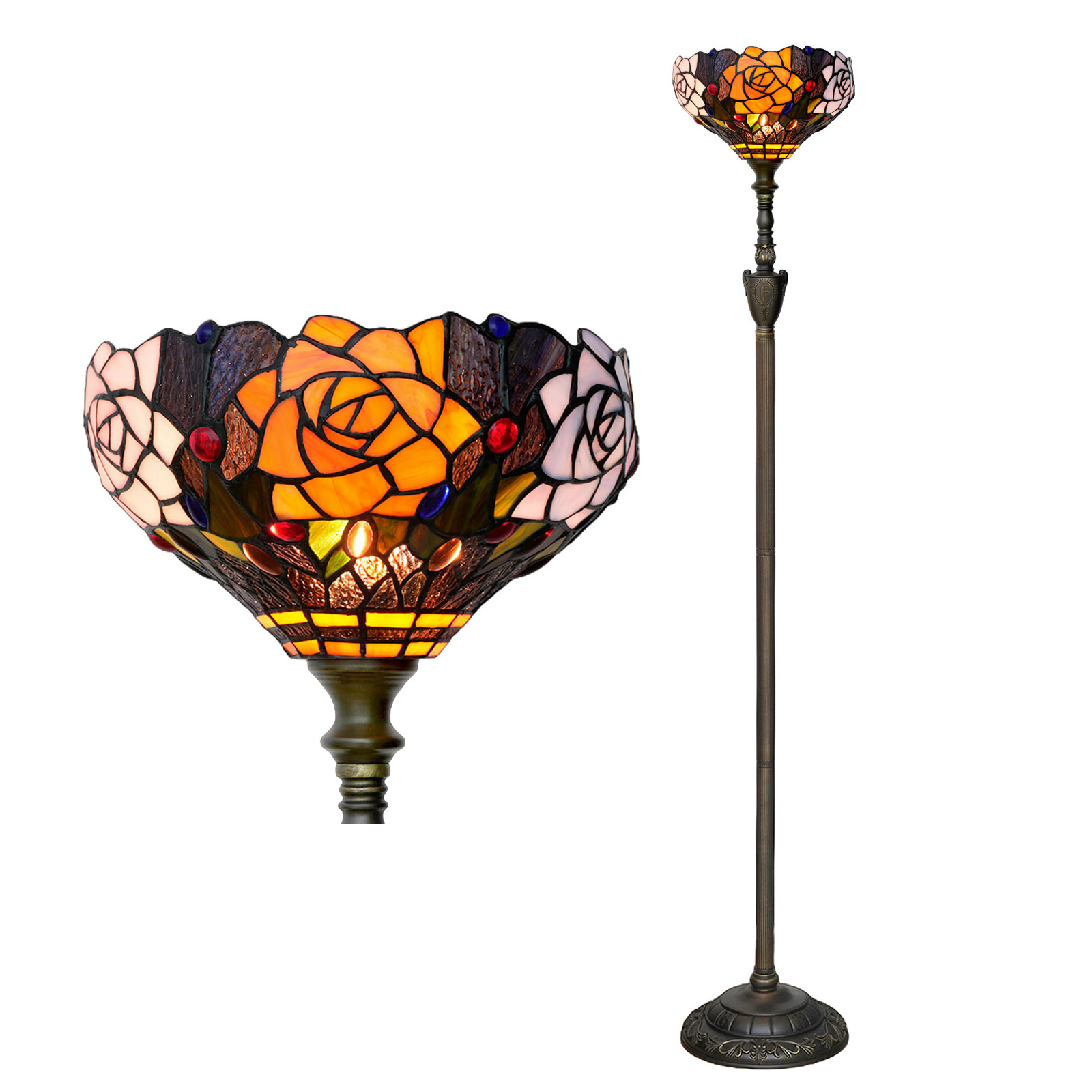Blivuself Tiffany Floor Lamp Victorian Style 12 Inches Deep Purple Background Powder Purple Orange Rose Hand-Made Colored Glass Lamp Shade, Vertical Pole Type Upward Floor Lamp, Indoor Lighting Light Luxury Style Home Decoration Suitable For Bedroom Living Room Office Study, 12 Inches Black Rose-OF Upward Floor Lamp OFXS004