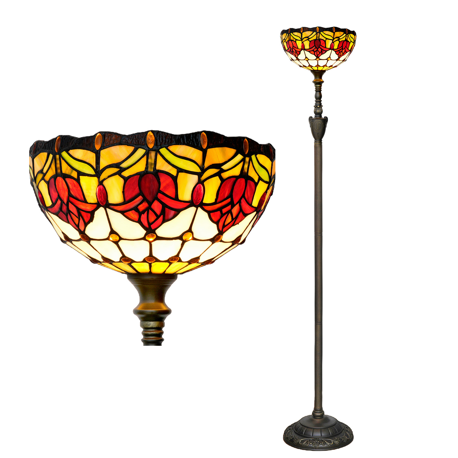 Blivuself Tiffany Floor Lamp Victorian Style 12 Inch Red Tulip Handmade Colored Glass Lamp Shade, Vertical Pole Type Upward Floor Lamp, Interior Lighting Retro Pastoral Style Home Decoration For Bedroom Living Room Office Study, 12 Inch Red Tulip -Of Upward Floor Lamp OFXS005