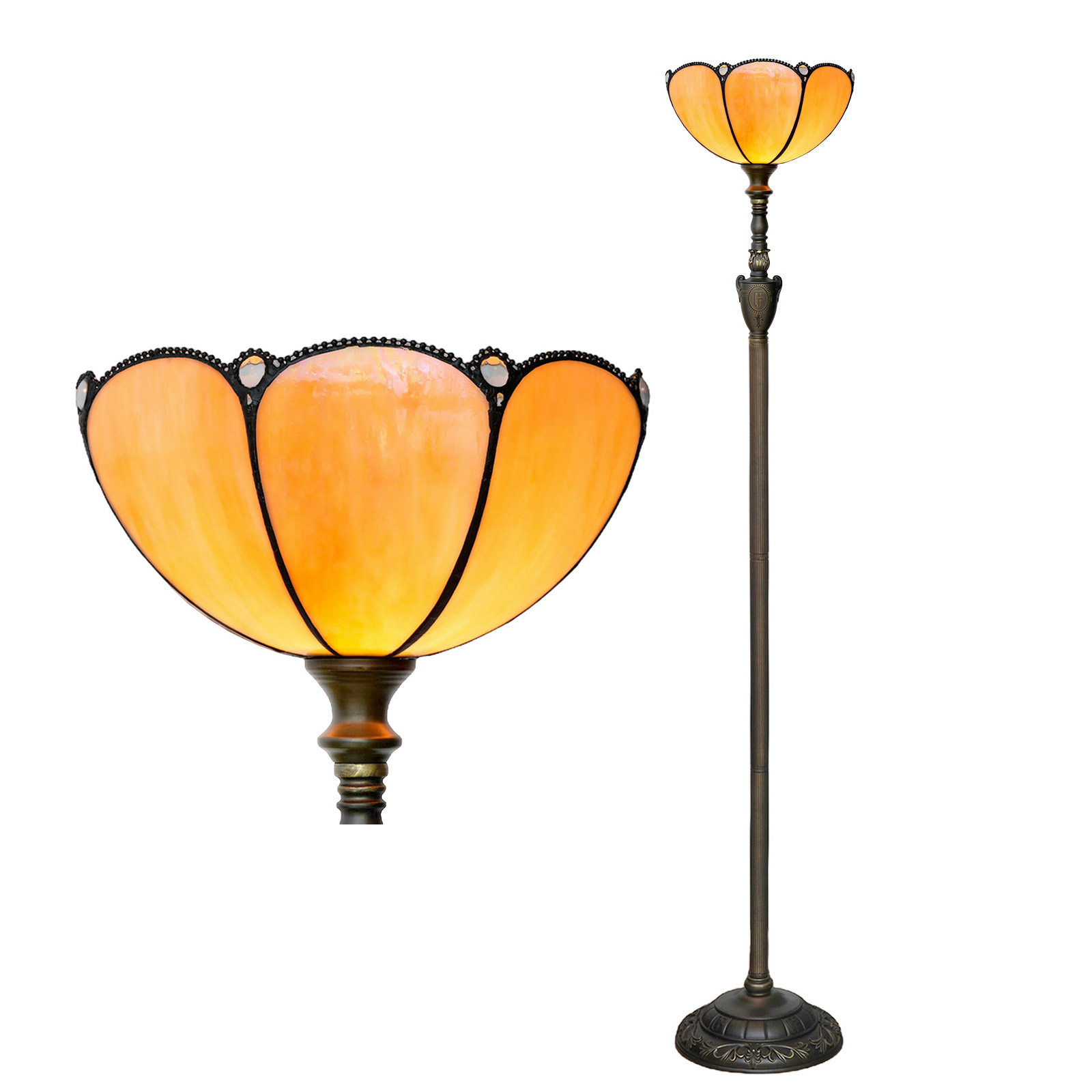 Blivuself Tiffany Floor Lamp Bohemian Style 12 Inch Yellow Baked Bend Handmade Stained Glass Lamp Shade, Vertical Pole Type Upward Floor Lamp, Interior Lighting Classical Art Style Home Decoration Suitable For Bedroom Living Room Office Study, 12 Inch Simple European Baked Bend -OF Upward Floor Lamp OFXS007