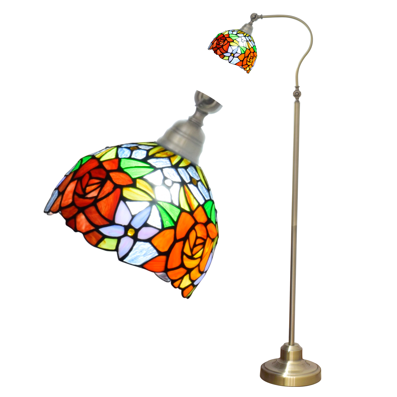 Blivuself Tiffany Romantic Classical Style Design 8-Inch Rose Handmade stained Glass Lampshade, Metal Downward Floor Lamp Vertical Adjustable Led Reading Light Exquisite Craft Retro Charm, Atmosphere Home Decoration 8-Inch Gorgeous Rose - Downward Floor Lamp Suitable For Bedroom Living Room Office Study Corridor Cafe, Etc. OFCP1033