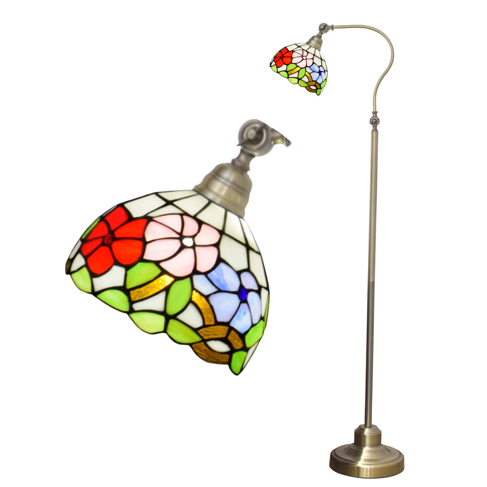 Blivuself Tiffany European Garden Style Design 8-Inch Pink Purple Red Tricolor Morning Glory Handcrafted Colored Glass Lampshade, Metal Floor Lamp Vertical Downward Adjustable Exquisite Crafts, Home Decoration For Bedroom Living Room Office Study Corridor Cafe 8-Inch Morning Glory - Downward Floor Lamp - Tricolor Flower OFCP1036