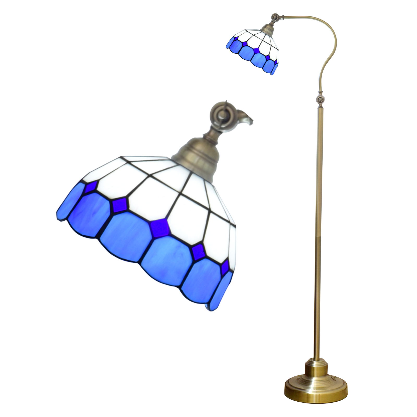 Blivuself Tiffany Modern Style Design 8-Inch Blue Plaid Hand-Made Colored Glass Lamp Shade, Metal Floor Lamp Vertical Downward Adjustable Exquisite Crafts, Home Decoration For Bedroom Living Room Office Study And Other 8-Inch Blue And White Plaid - Downward Floor Lamp OFCP1038