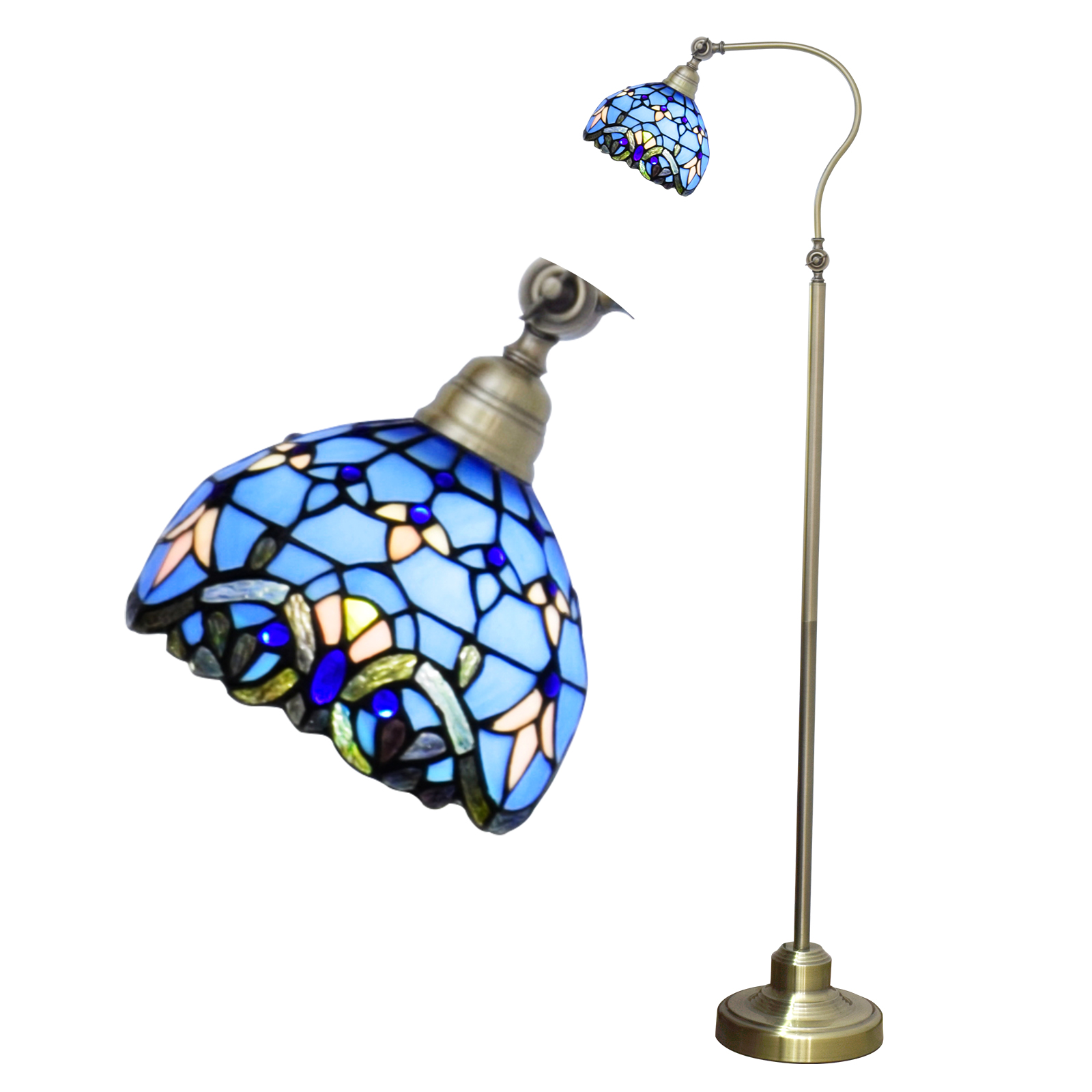 Blivuself Tiffany Victorian Design 8 Inch Lavender Purple Baroque Hand-Made Stained Glass Lampshade, Metal Floor Lamp Vertical Downward Adjustable Classical Art Crafts, Home Decoration For Bedroom Living Room Office Study Etc. 8 Inch Blue Baroque - Downward Floor Lamp OFCP1039