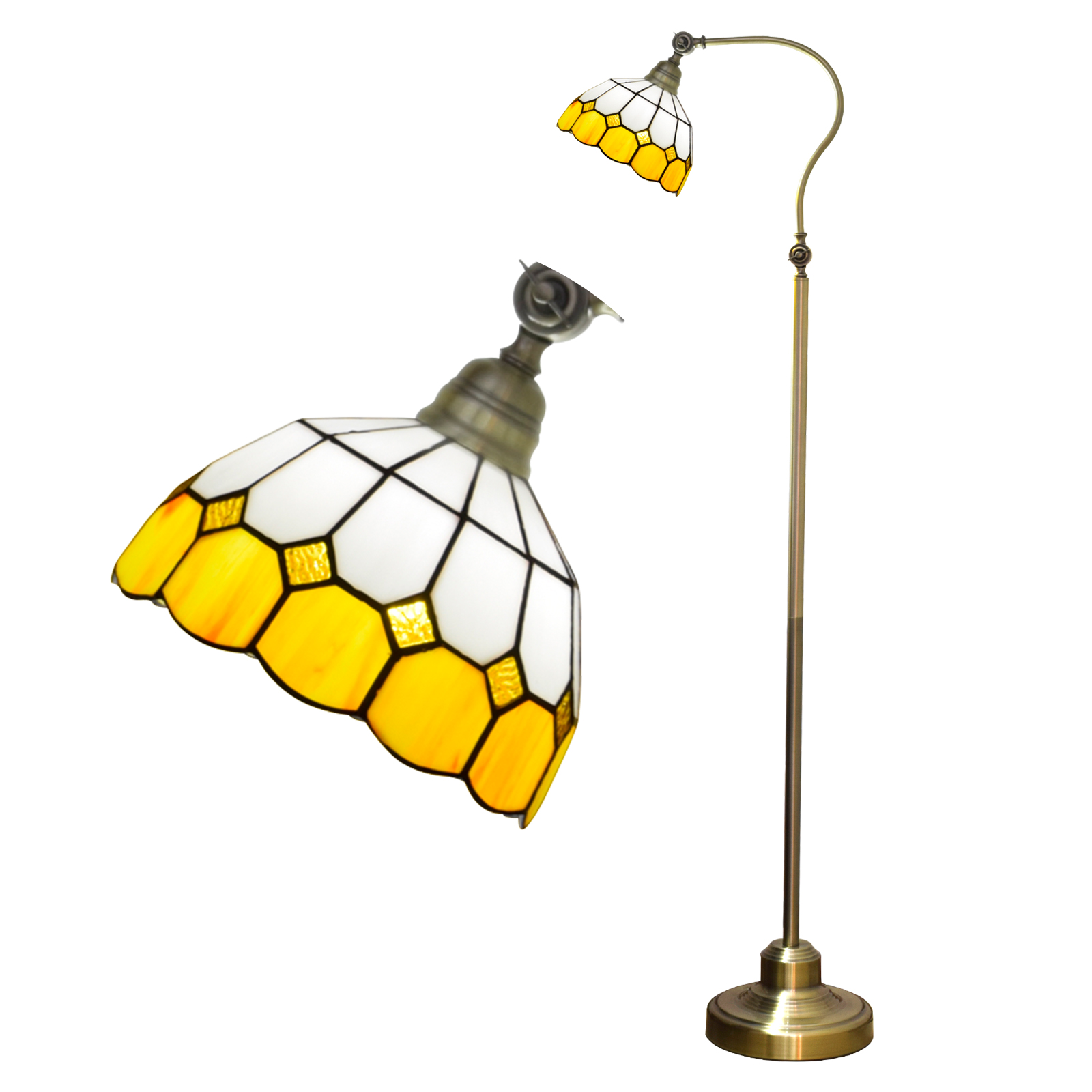 Blivuself Tiffany modern light luxury style design 8-inch yellow lattice hand-made colored glass lamp shade, metal floor lamp vertical downward adjustable exquisite crafts suitable for bedroom living room office study 8-inch yellow and white lattice - downward floor lamp OFCP1043