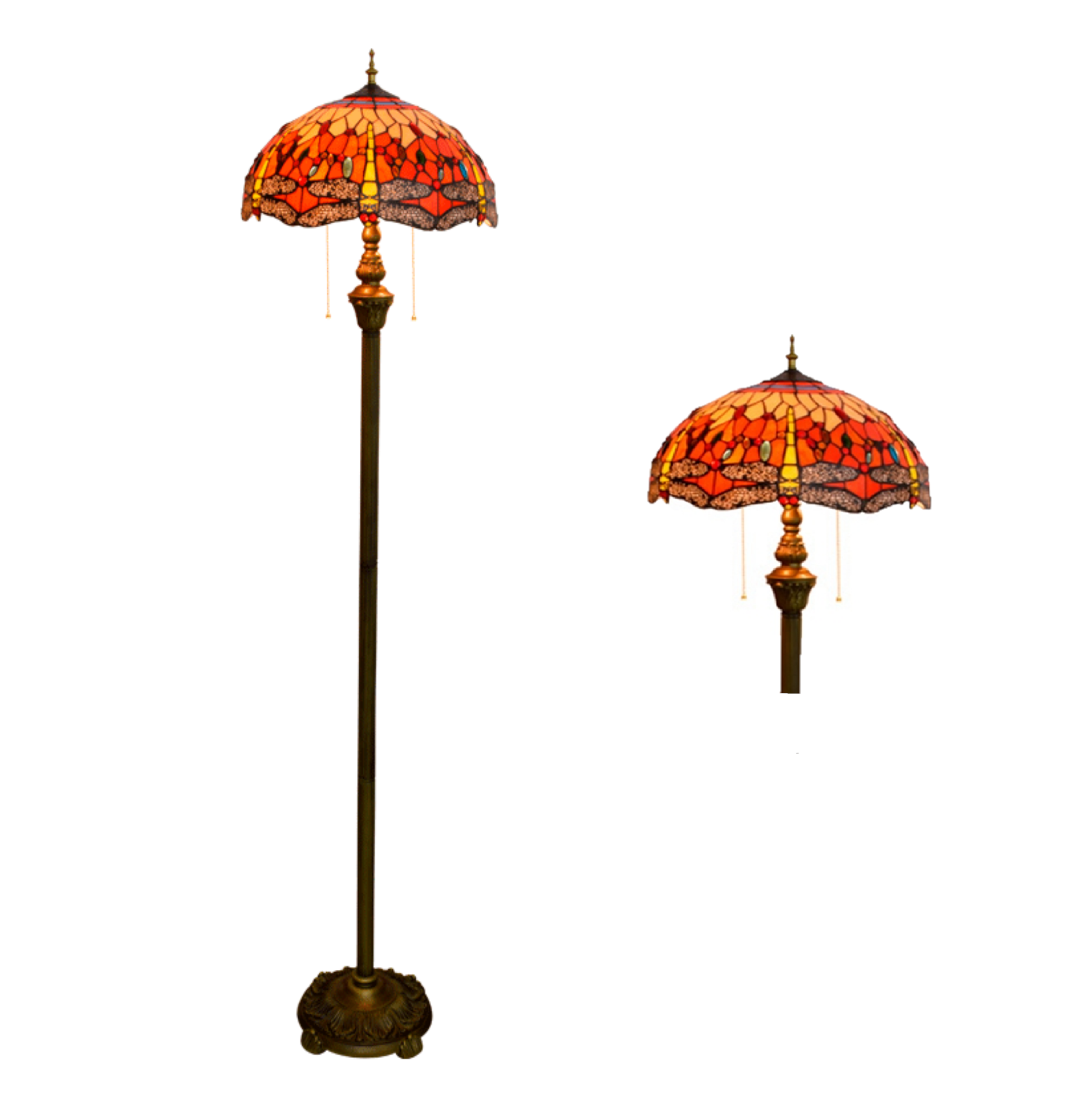 Blivuself Tiffany European Vintage style 16 Inch Red Dragonfly pure hand-made stained glass lamp shade floor lamp vertical zip adjustable light reading light Bronze antique light pole Light luxury art home decoration for bedroom living room office study corridor cafe 16" red Dragonfly - four-leg bronze floor lamp OFRF1017
