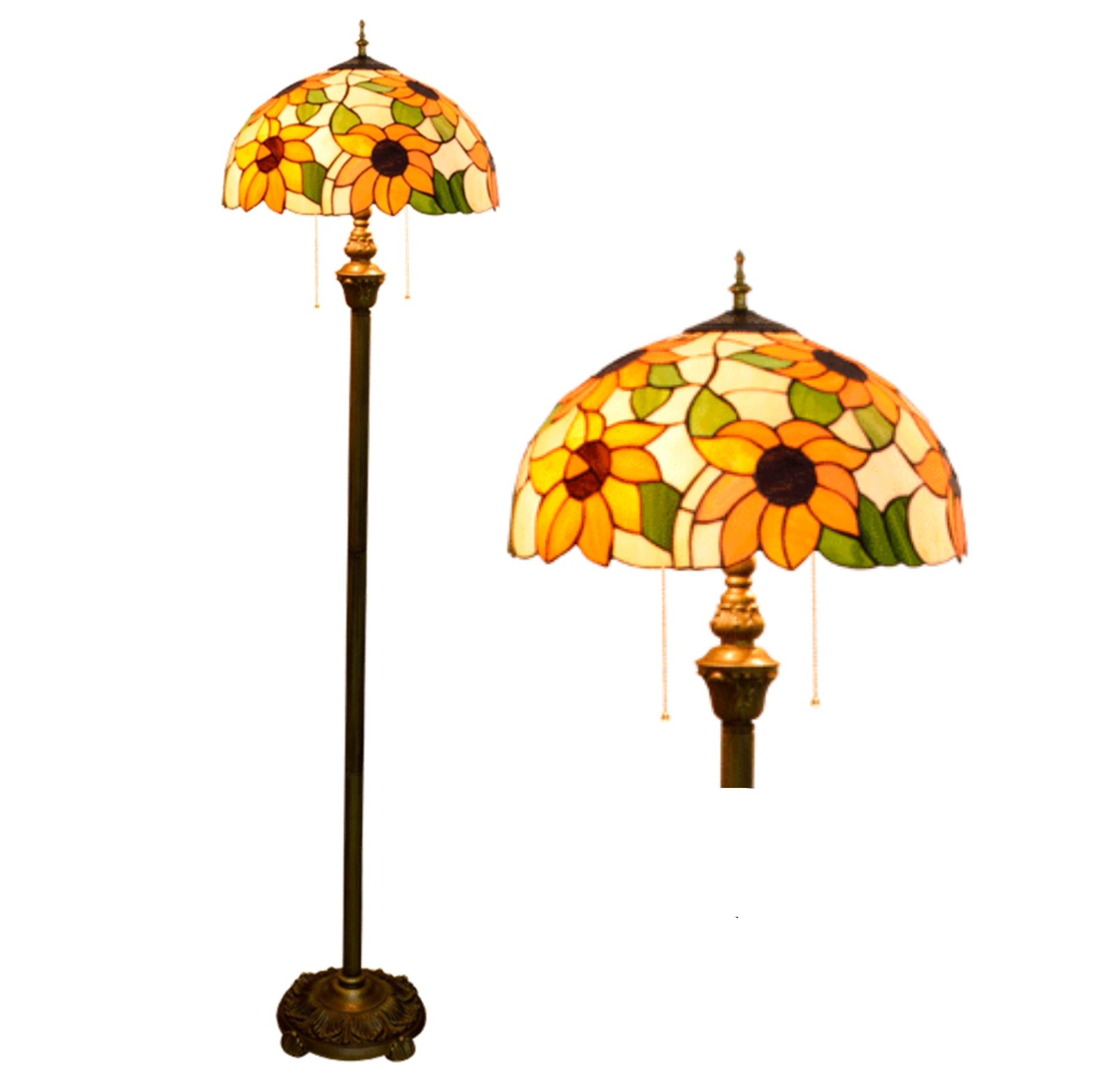 Blivuself Tiffany European-Style Retro 16-Inch White Orange Sunflower Pure Hand-Made Stained Glass Lamp Shade Vertical Zip-Up Adjustable Light Reading Light Bronze Antique Light Pole Light Luxury Art Home Decoration For Bedroom Living Room Office Study Corridor Cafe 16-Inch White Sunflower - Four-Leg Bronze Floor Lamp OFRF1007