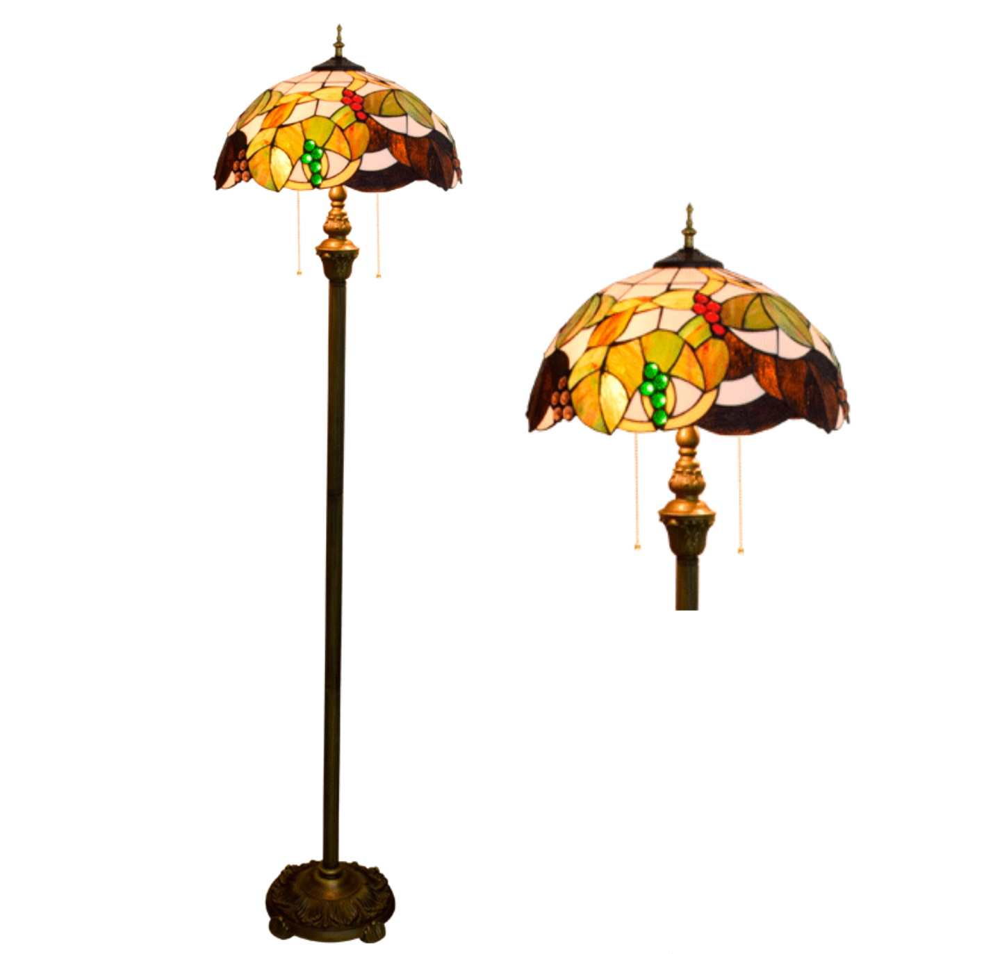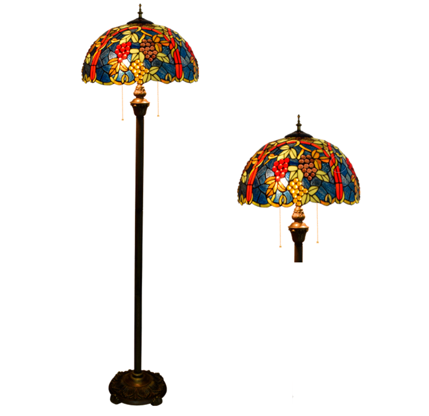 Blivuself Tiffany European Vintage Style 17-Inch Grape Fruit Pure Hand-Made Stained Glass Lamp Shade Floor Lamp Vertical Zip Adjustable Light Reading Light Bronze Antique Light Pole Light Luxury Art Home Decoration Suitable For Bedroom Living Room Office Study Corridor Cafe 17-Inch Grape Fruit - Four-Foot Bronze Floor Lamp OFRF1018