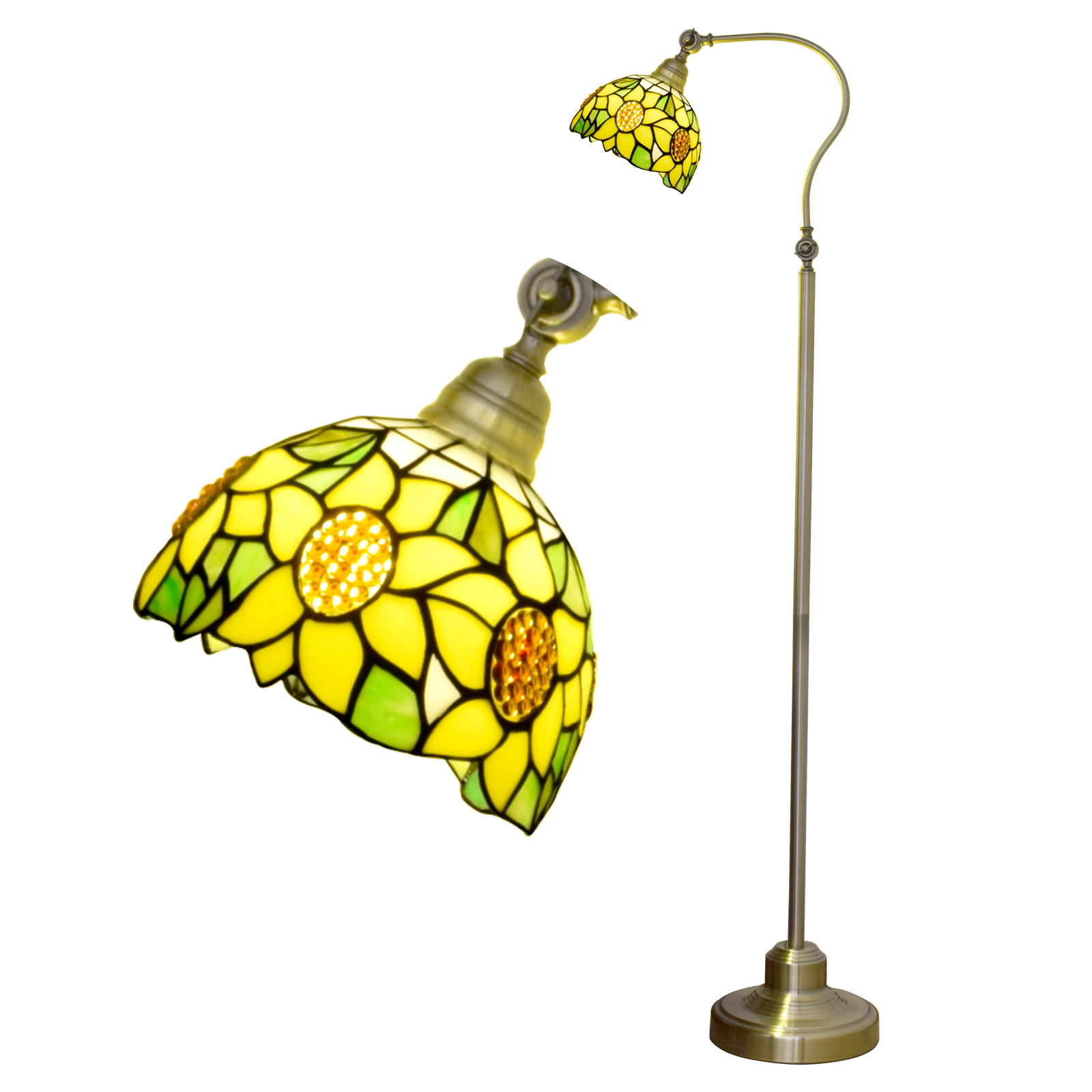 Blivuself Tiffany European Retro Style 8-Inch Yellow Sunflower Pure Hand-Made Stained Glass Lamp Shade Metal Downward Floor Lamp Vertical Adjustable Light Reading Light Light Luxury Art Home Decoration For Bedroom Living Room Office Study Corridor Cafe 8-Inch Yellow Sunflower Downward Floor Lamp OFCP1023