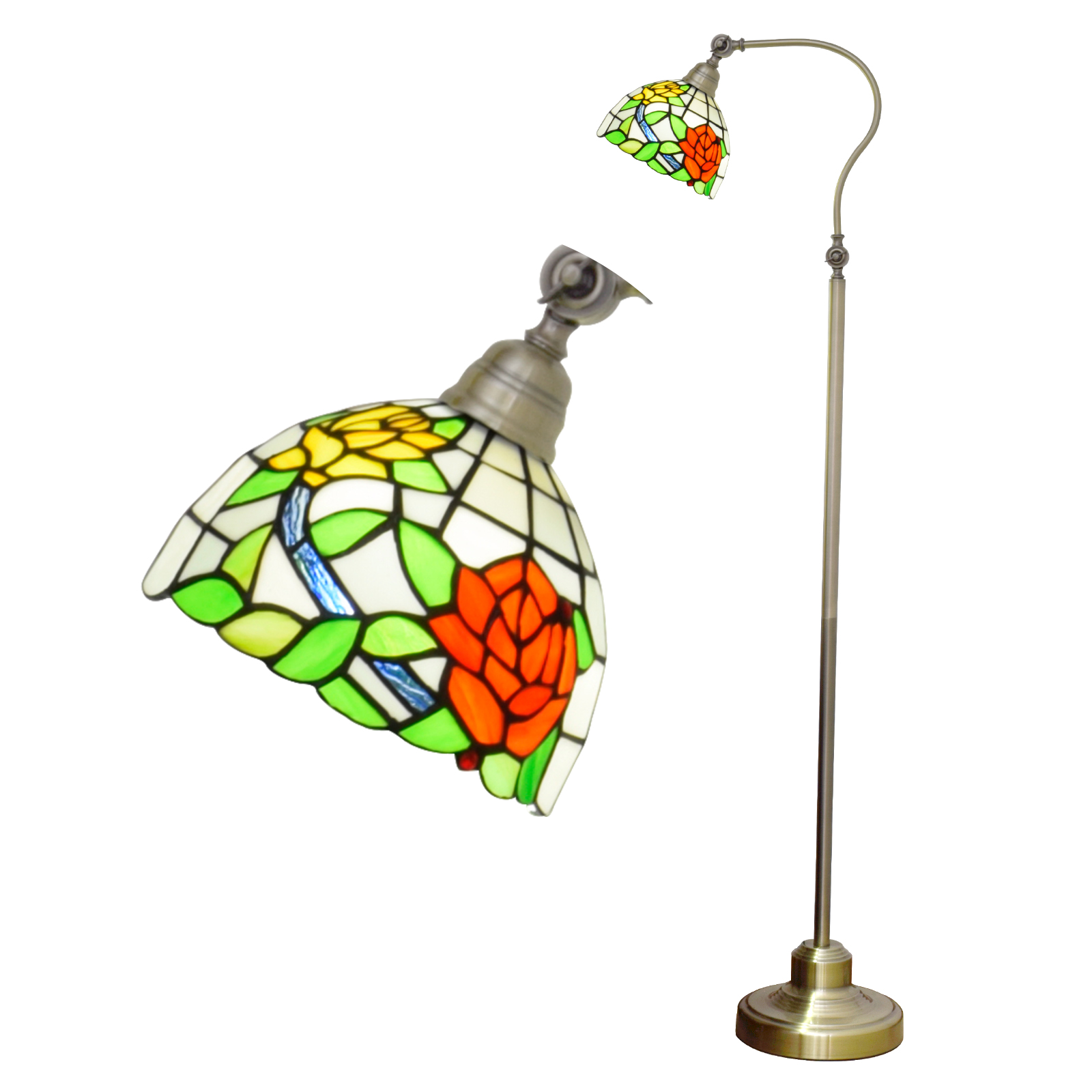 Blivuself Tiffany Victorian Design 8-Inch Red And Yellow Two-Color Rose Handcrafted Stained Glass Lampshade Metal Downward Floor Lamp Vertical Adjustable Led Reading Light Retro Art Home Decoration 8-Inch Two-Color Rose - Downward Floor Lamp Suitable For Bedroom Living Room Office Study Corridor Cafe, Etc. OFCP1028