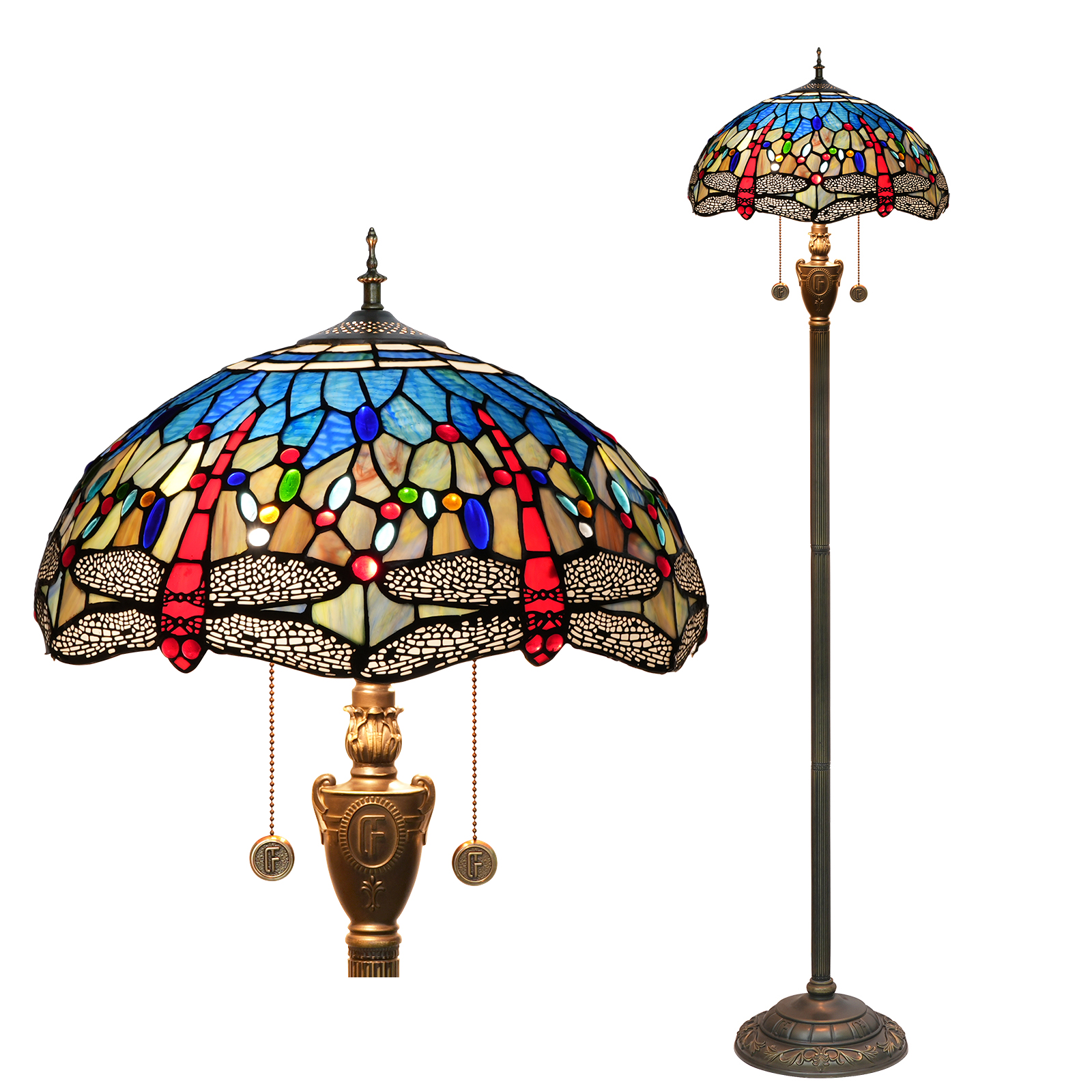 Blivuself Tiffany Floor Lamp Victorian Style 16 Inch Blue Background Red Dragonfly Handmade Stained Glass Lampshade, Indoor Lighting Reading Vintage Style Home Decoration For Bedroom Living Room Office Study Etc. 16 Inch Blue Background Dragonfly Floor Lamp OFN18