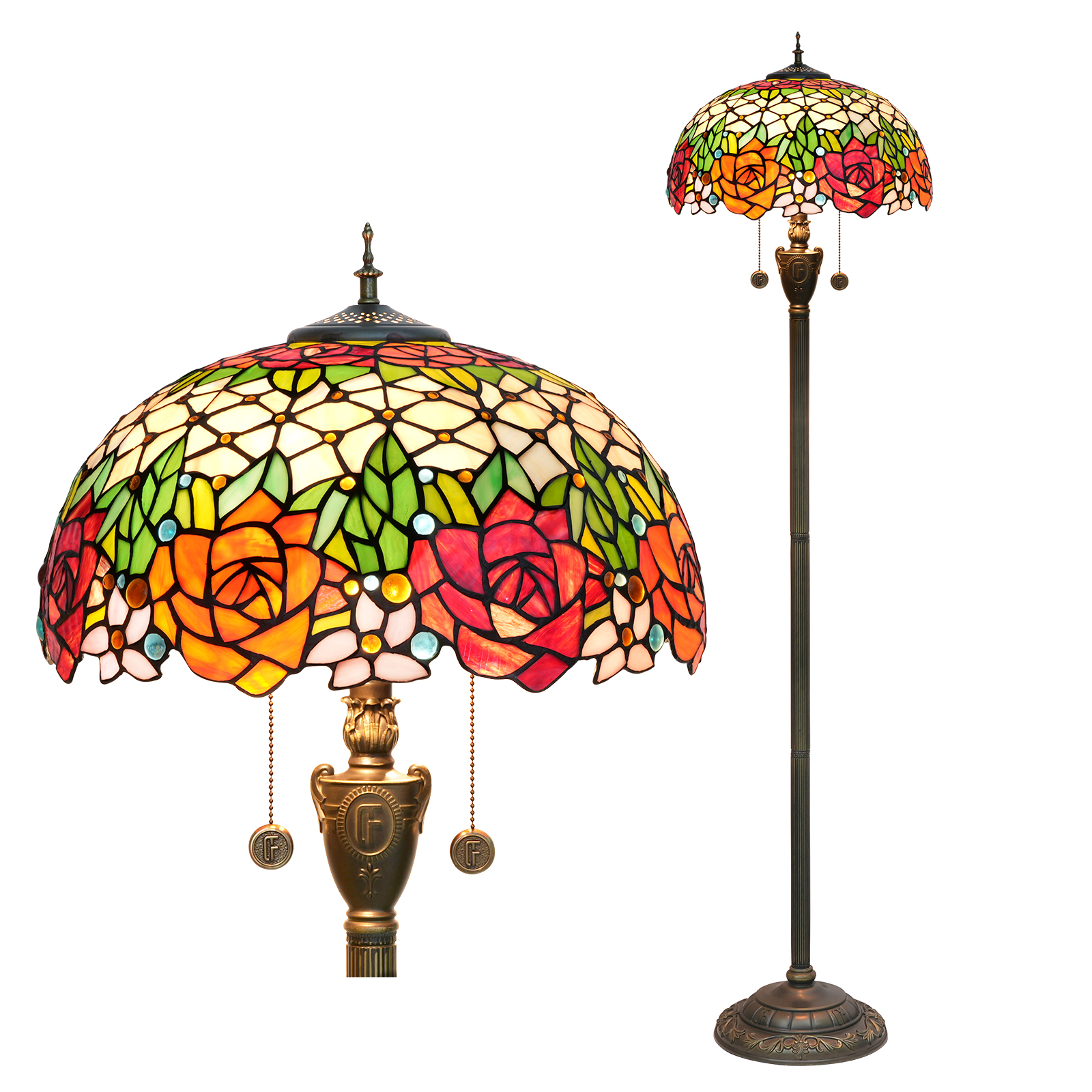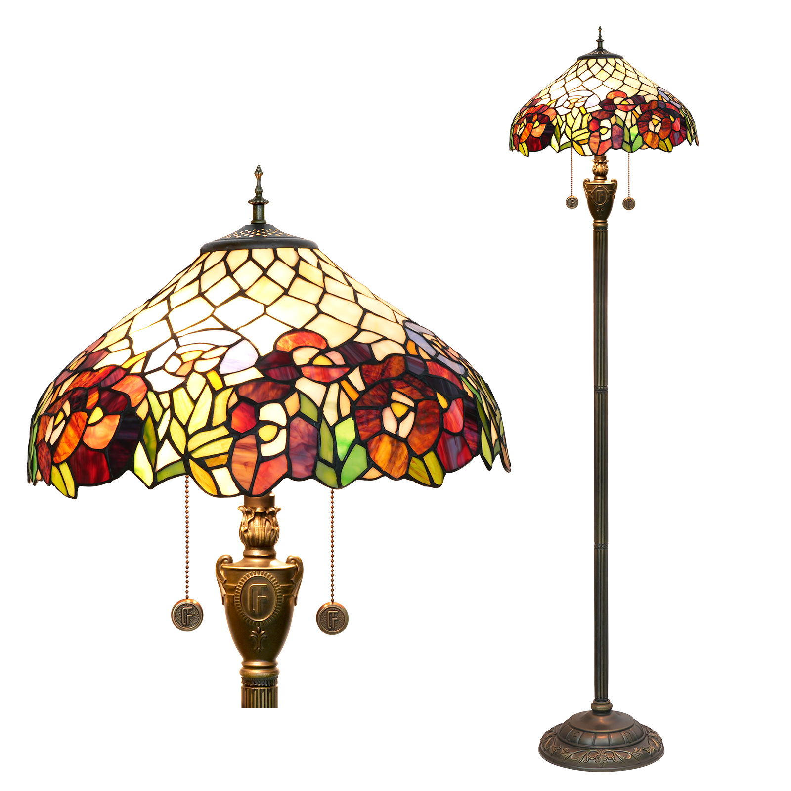 Blivuself Tiffany Floor Lamp Light Luxury Palace Style Design 16 Inches Red Rose Handmade Stained Glass Lamp Shade, Indoor Lighting Reading European Garden Home Decoration For Bedroom Living Room Office Study, Etc. 16 Inches Love Rose -Of Floor Lamp OFN13