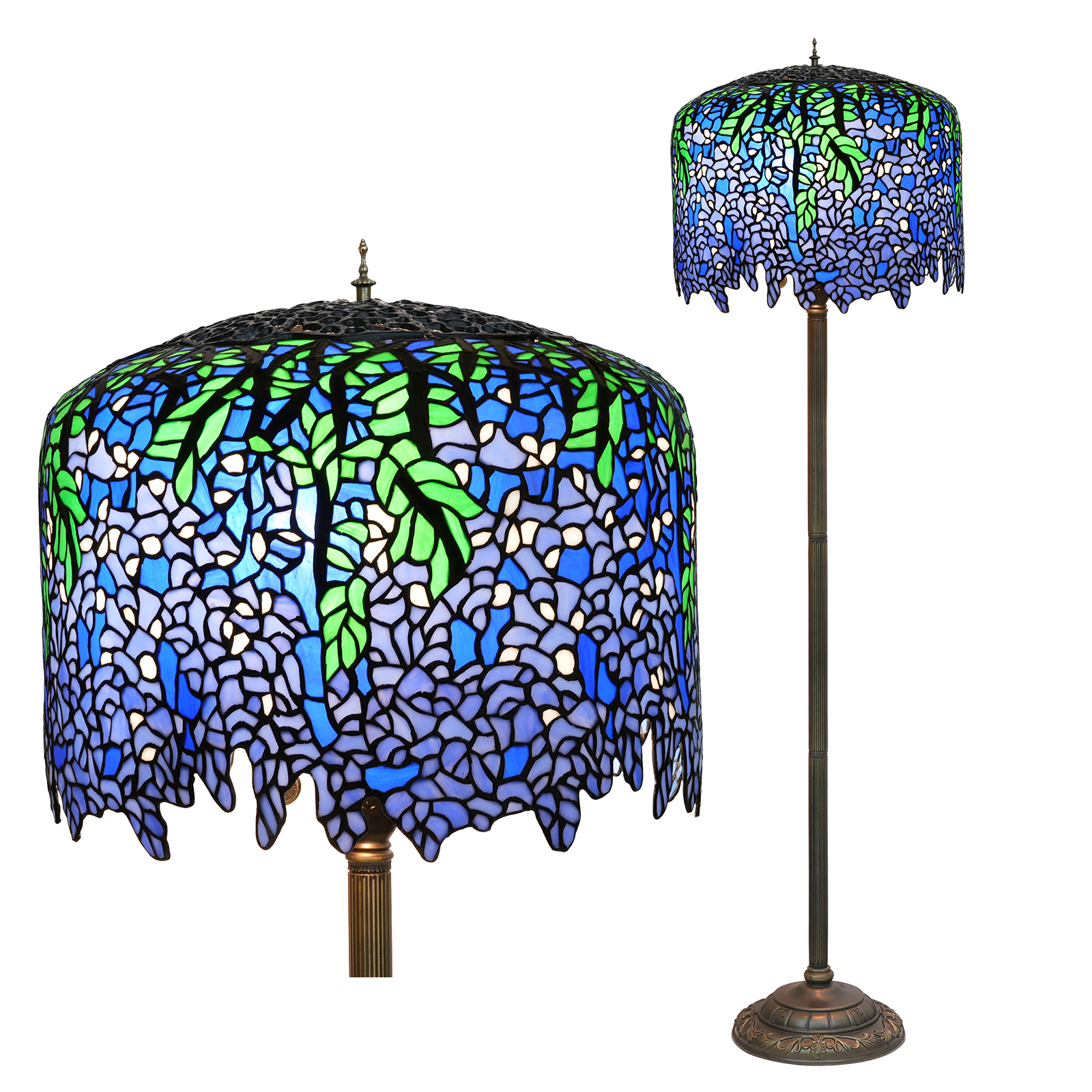 Blivuself Tiffany Floor Lamp Medieval Light Luxury Style 18-Inch Wisteria Flower Barrel Lamp Handmade Stained Glass Lamp Shade, Indoor Lighting Reading Vintage Classical Art Atmosphere Home Decoration Suitable For Bedroom Living Room Office Study 18-Inch Wisteria -OF Floor Lamp OFN38