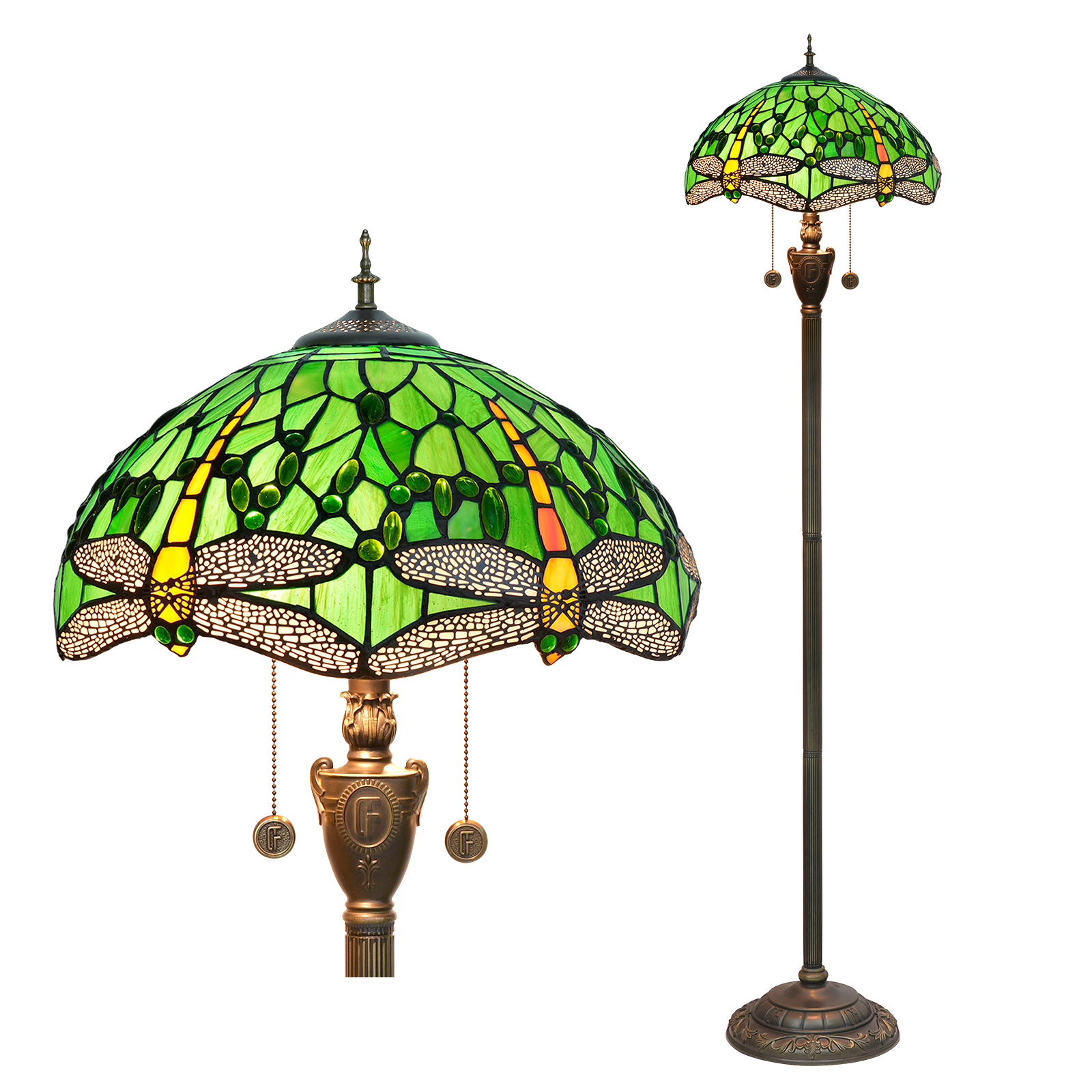 Blivuself Tiffany Floor Lamp Medieval Traditional Style 16 Inch Green Background Red Dragonfly Handmade Stained Glass Lamp Shade, Indoor Lighting Reading Classical Art Atmosphere Home Decoration Suitable For Bedroom Living Room Office Study, Etc. 16 Inch Green Yellow Dragonfly-OF Floor Lamp OFN39