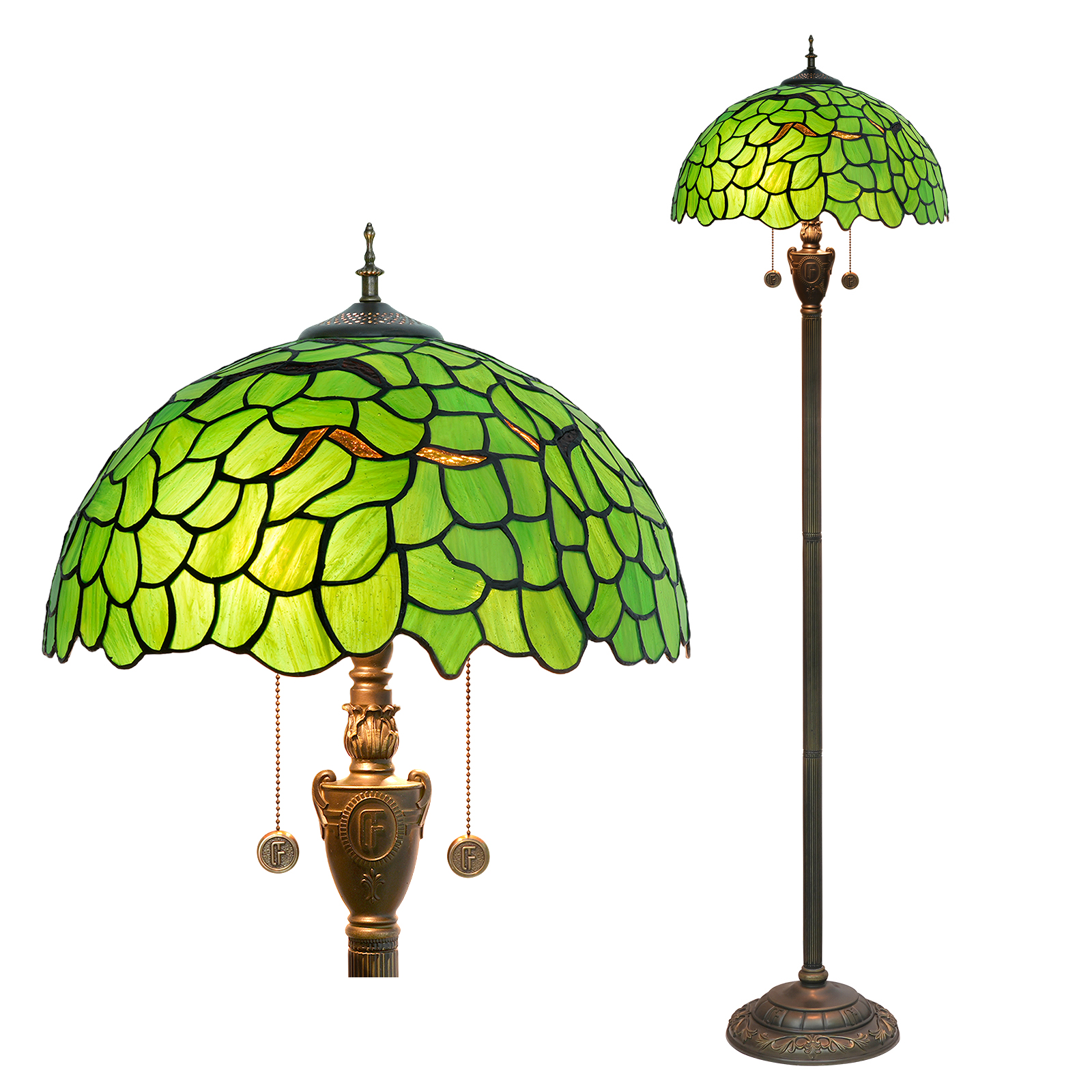 Blivuself Tiffany Floor lamp Retro Pastoral Style 16 Inch Green Leaf Hand-Colored Glass Lamp Shade, Classical Style Indoor Lighting Eye Protection Reading Light, Suitable For Study Bedroom Dining Room Office, 16 Inch Green Leaf -OF Floor Lamp OFN42