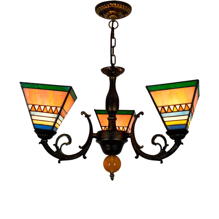 Blivuself Tiffany Chandelier Pyramid Stained Glass Chandelier 6 inch Small Lampshade Vintage Art Decor 3 Heads Chandelier for Living Room Bedroom Restaurant Hotel