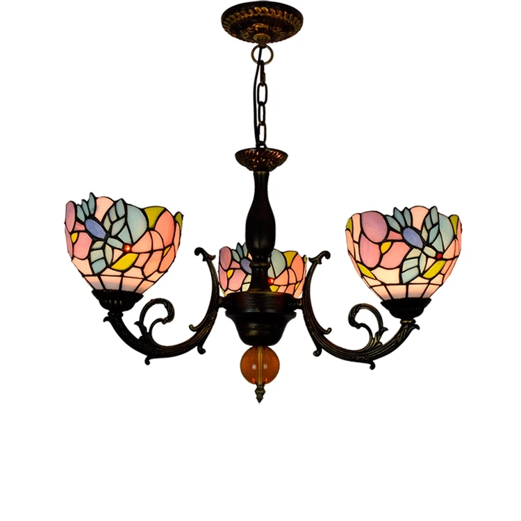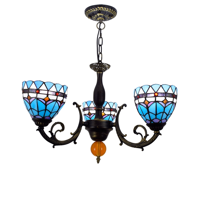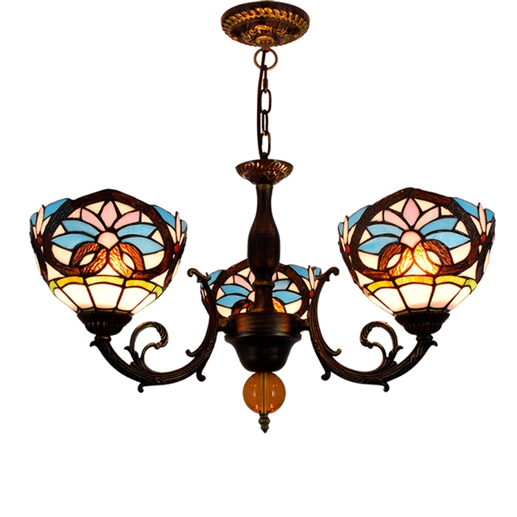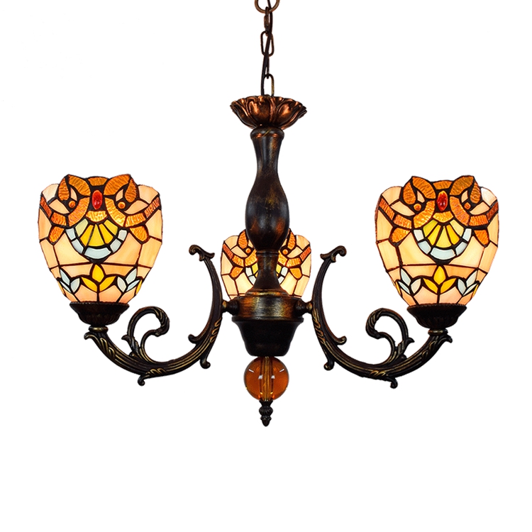 Blivuself Tiffany Chandelier Baroque Stained Glass Chandelier 6 inch Small Lampshade Vintage Art Decor 3 Heads Chandelier for Living Room Bedroom Restaurant Hotel