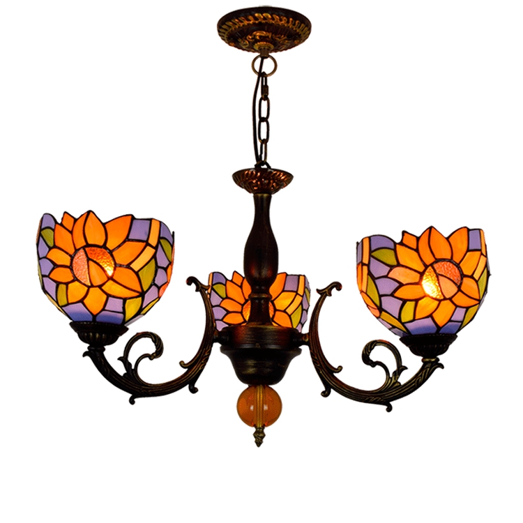 Blivuself Tiffany Chandelier Victorian Style White Background Sunflower Stained Glass Chandelier 8 Inch Small Lampshade Vintage Art Deco 3 Chandelier Suitable For Living Room Bedroom Dining Room Hotel