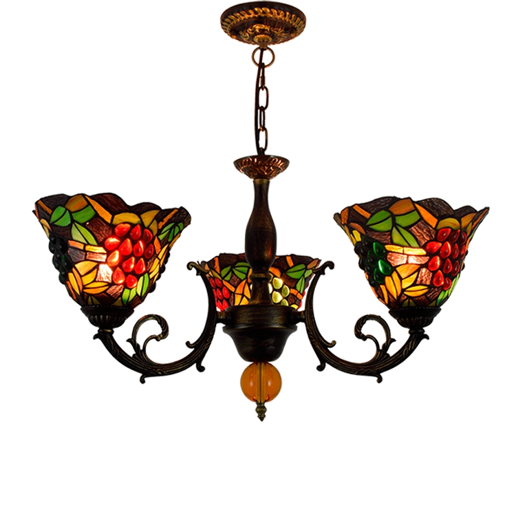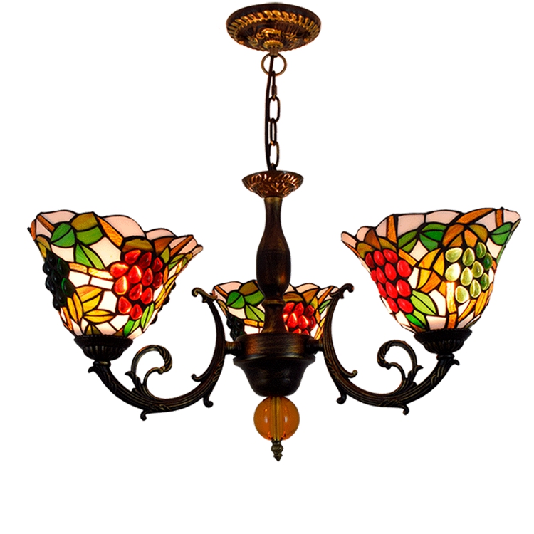Blivuself Tiffany Chandelier White Background Grapes Stained Glass Chandelier 8 inch Small Lampshade Vintage Art Decor 3 Heads Chandelier for Living Room Bedroom Restaurant Hotel