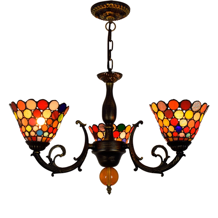 Blivuself Tiffany Chandelier Bohemian Colorful disc Stained Glass Chandelier 6 inch Small Lampshade Vintage Art Decor 3 Heads Chandelier for Living Room Bedroom Restaurant Hotel