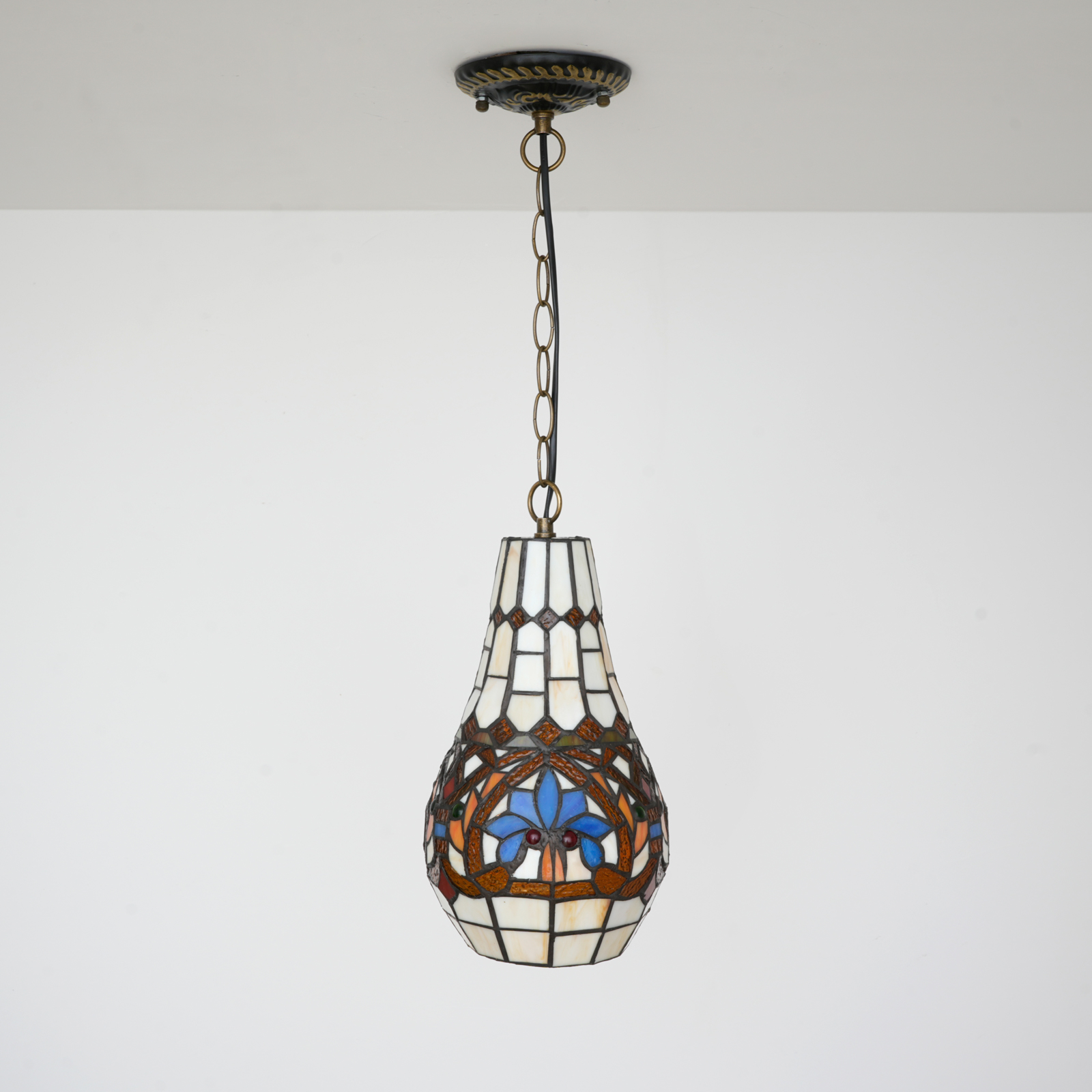 This Tiffany style chandelier is a perfect example of the integration of art and practicality. The lampshade is carefully spliced with colored glass, featuring harmonious color combinations and rich layers. The patterns of flowers and others are vividly lifelike, and every detail has been meticulously crafted by artisans. When light passes through the stained glass, it emits a dreamy and warm glow, creating a unique romantic atmosphere for the space, as if transporting people into a fairy tale world full of artistic sense.