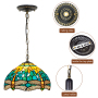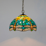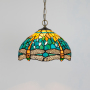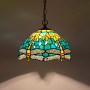 Blivuself Tiffany Style Stained Glass 12-Inch Green Chandelier European And American Retro Garden Style Suitable For Living Room, Dining Room, Bedroom, Bar And Other Indoor Home Decoration 12-Inch Green Yellow Dragonfly - Regular Single Chain Chandelier OFP1161