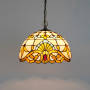 Blivuself Tiffany Style Stained Glass 12-Inch Warm Yellow Chandelier European And American Retro Style Suitable For Living Room, Dining Room, Bedroom, Bar And Other Indoor Home Decoration 12-Inch Baroque - Conventional Single Chain Chandelier OFP1063