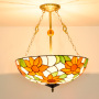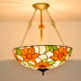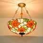 Blivuself Tiffany Style Stained Glass 20 Inch Orange Sunflower Upward Chandelier European And American Retro Style Suitable For Living Room, Dining Room, Bedroom, Bar And Other Indoor Home Decoration 20 Inch Sunflower Flat Mouth - New Buckle Ring Anti-Chandelier OFP1117