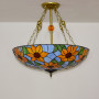 Blivuself Tiffany Style Stained Glass 24-Inch Light Blue Upward Chandelier European And American Retro Style Suitable For Living Room, Dining Room, Bedroom, Bar And Other Indoor Home Decoration 24-Inch Blue Sunflower - New Buckle Ring Upward Chandelier OFP1127
