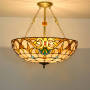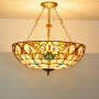 Blivuself Tiffany Style Stained Glass 24-Inch Warm Yellow Upward Chandelier European And American Retro Style Suitable For Living Room, Dining Room, Bedroom, Bar And Other Indoor Home Decoration 24-Inch Baroque Flat Mouth - New Buckle Ring Anti-Chandelier OFP1116