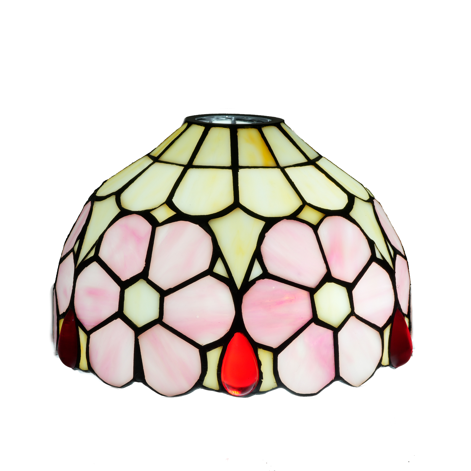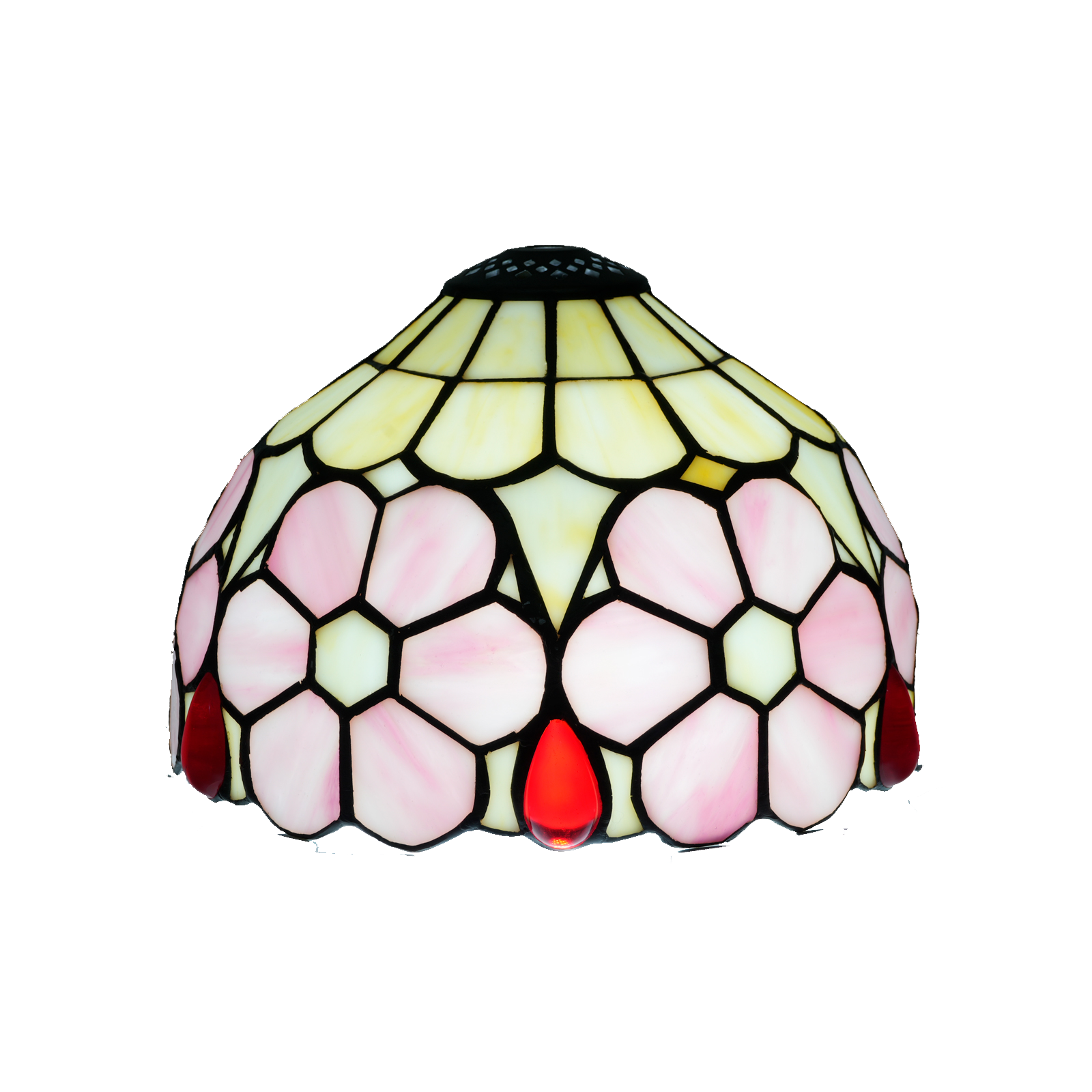 12 Inch Blivuself Tiffany Style Stained Glass Replacement Lamp Shade, Rural Style Flower Hole Design, Suitable For Floor Lamp Chandelery Ceiling Lamp, Etc. (DZ12003X, 1pcs, Pink)