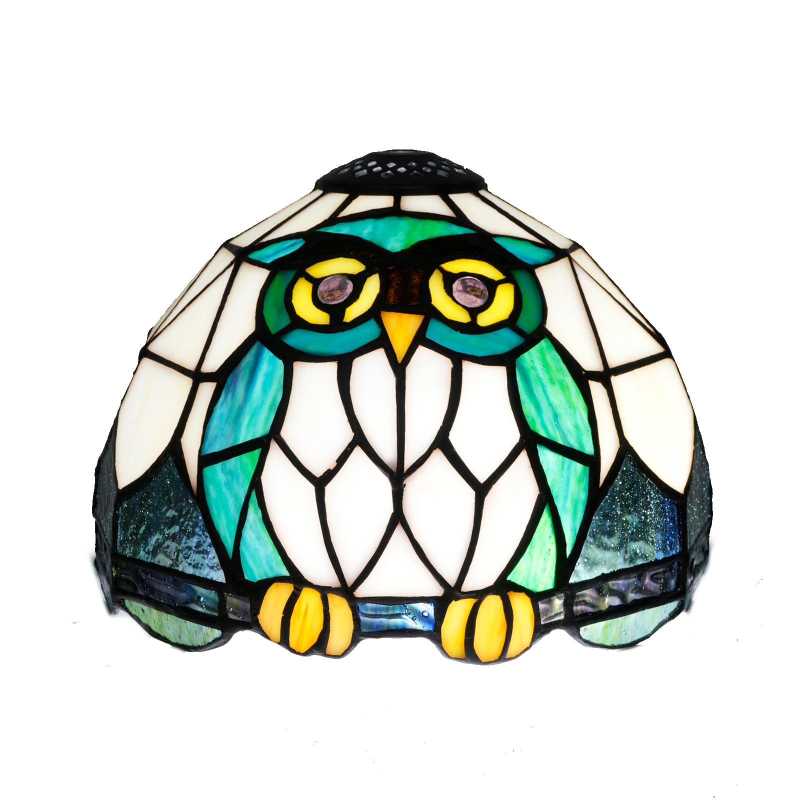 8-Inch Blivuself Tiffany Stained Glass Replacement Lampshade,Owl Animal Series Large Mouth Design, Handcrafted, No Accessories, Suitable For Table Lamps, Chandeliers And Ceiling Lamps (DZ08014D, 1pcs)
