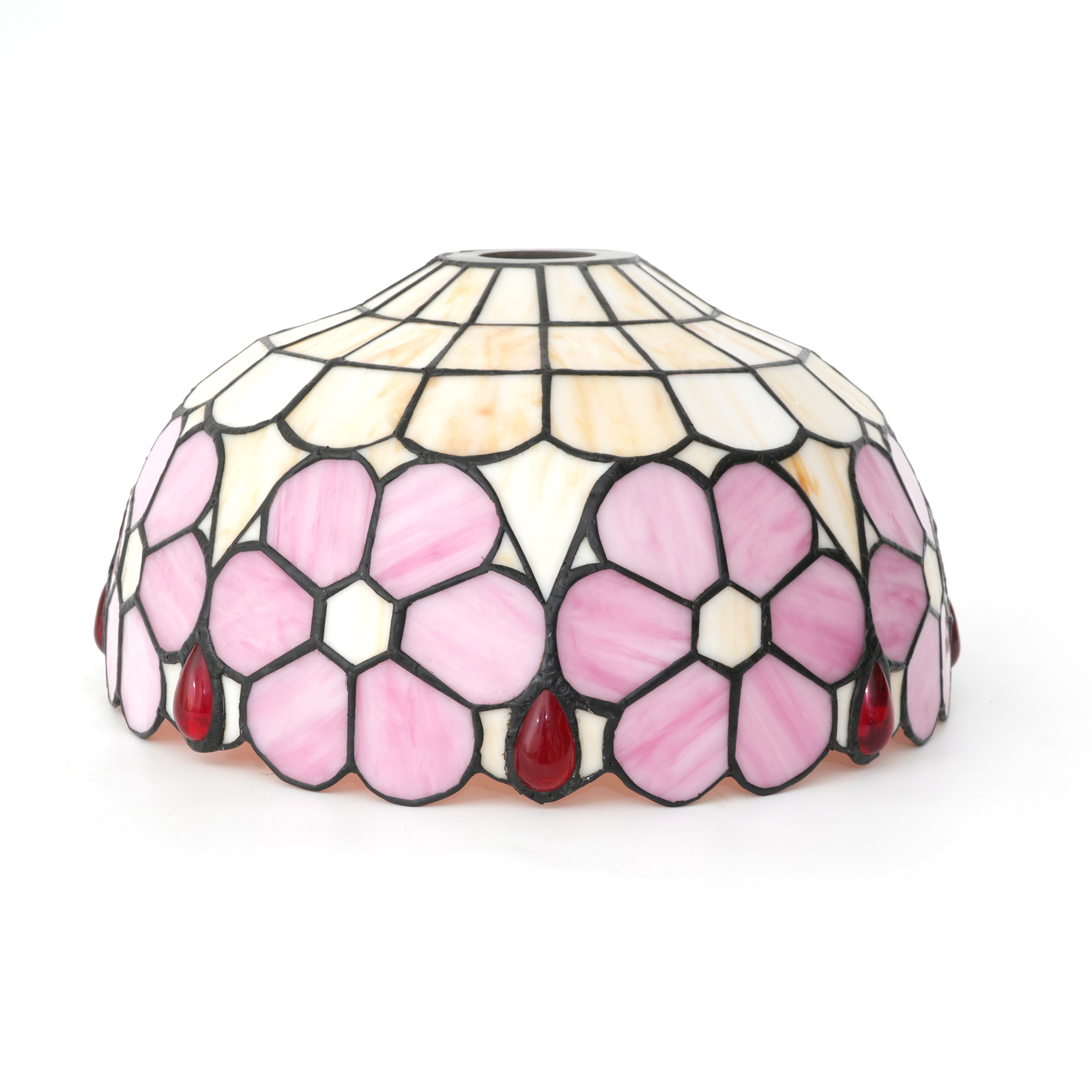 12 Inch Blivuself Tiffany Style Large Mouth Replacement Lampshade, Country- Style Stained Glass Flower Design, Suitable For Floor Lamp Chandelery Ceiling Lamp, Etc. (DZ12003D, 1pcs, Pink)