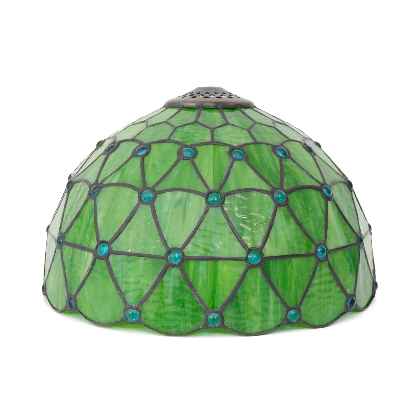 Blivuself Tiffany Stained Glass Replacement Lampshade,12-Inch Retro Country Green Blue Beads, Hand-Pinhole Craftsmanship, Suitable For Table Lamps, Floor Lamps, Chandeliers And Home Decoration (1pcs,DZ12023X)